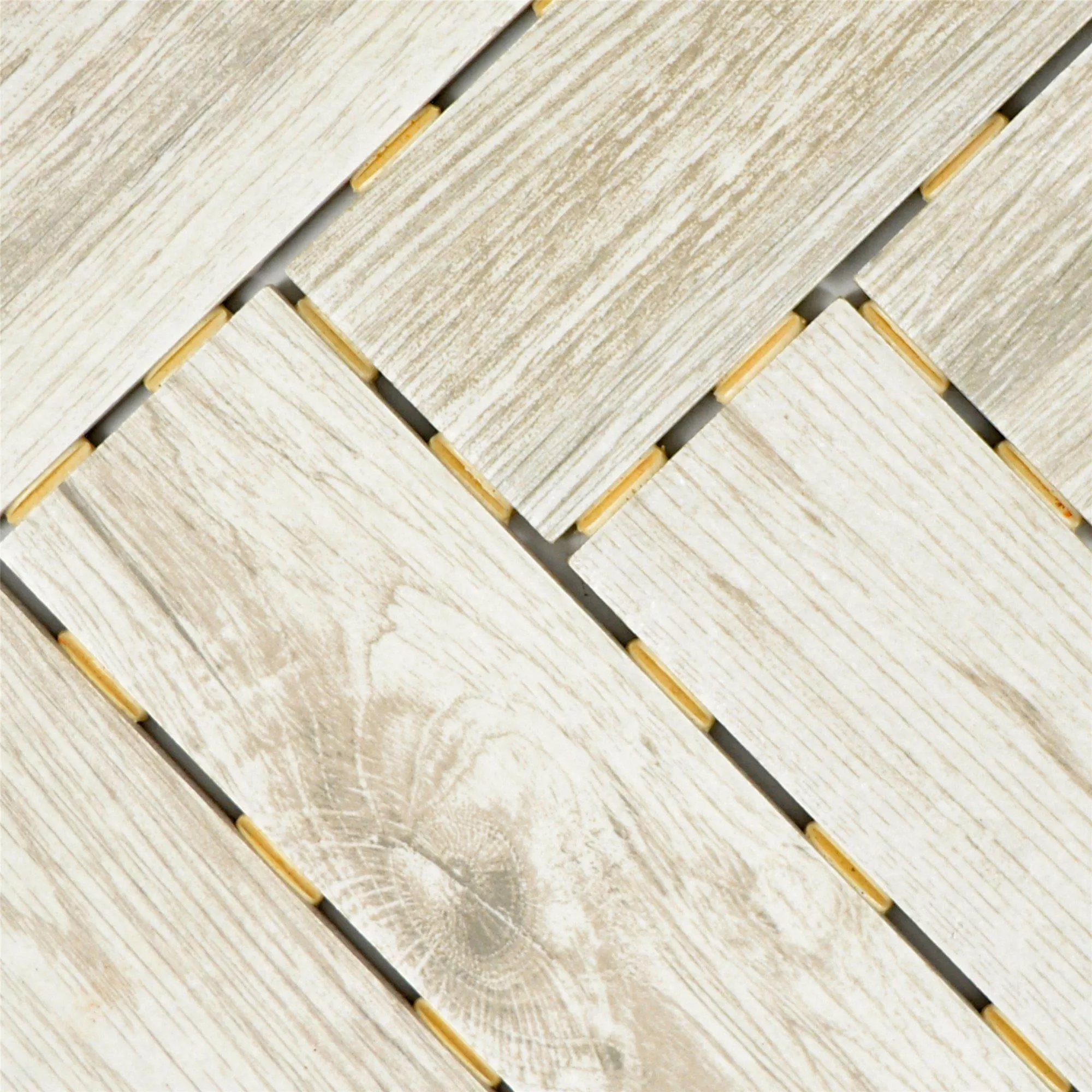 Hver flise er designet i et sildebensformat og har en størrelse på 60x240mm med en tykkelse på 6mm. Fliserne lægges på måtter, der måler 26,7x34,4cm og dækker et areal på 0,092m². En pakke indeholder 0,92m², hvilket giver dig nok materiale til dine projekter. Den punktlimede struktur gør monteringen nemmere og sikrer præcis placering af fliserne.