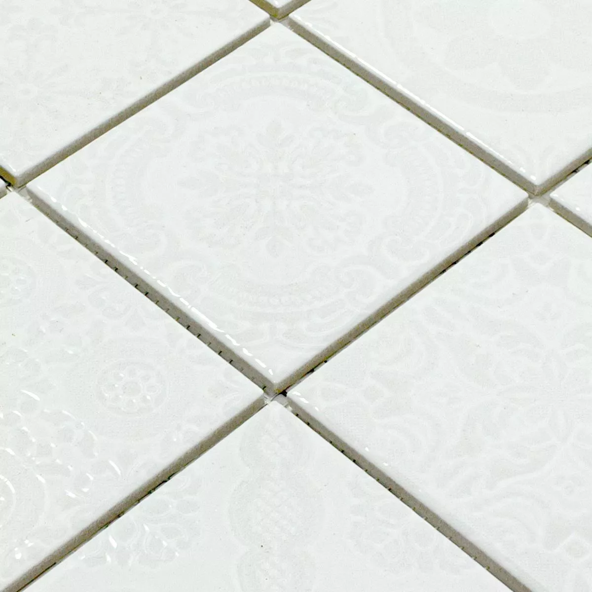 Keramik Mosaik Fliser Rivabella Relief Hvid