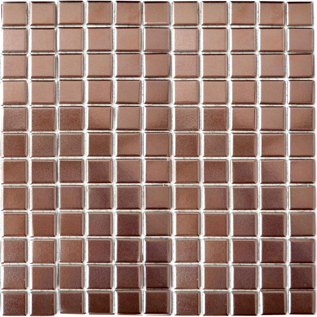 The tiles are made of high quality ceramic. After firing, the surface was coated with copper to give the tiles the desired noble appearance. The square tiles are suitable for laying on walls and on floors. For outdoor installation, ceramic mosaic tiles are Zando copper square, since they are not frost resistant. The metallic surface of matt-glossy copper gives interiors a cozy, warm glow. Ceramic mosaic tiles Zando Copper Square are easy to maintain and are tough and durable. You just need to wipe it off with a soft, slightly damp cloth. Ceramic mosaic tiles Zando copper square can be laid by yourself. Since they are attached to a mat, eliminates the cropping.