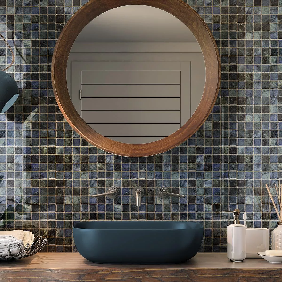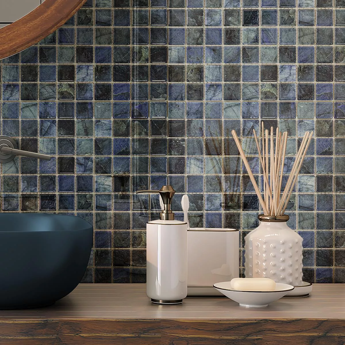 Tilføj et elegant og funktionelt touch til dine værelser og udendørsområder med Elysium mosaikflis i blå . Hver måtte af denne flise har et areal på 0,088 m² og måler 29,7 x 29,7 cm. De enkelte mosaiksten er 23 x 23 mm store og er limet på et robust net klar til montering, hvilket gør monteringen særlig nem.
