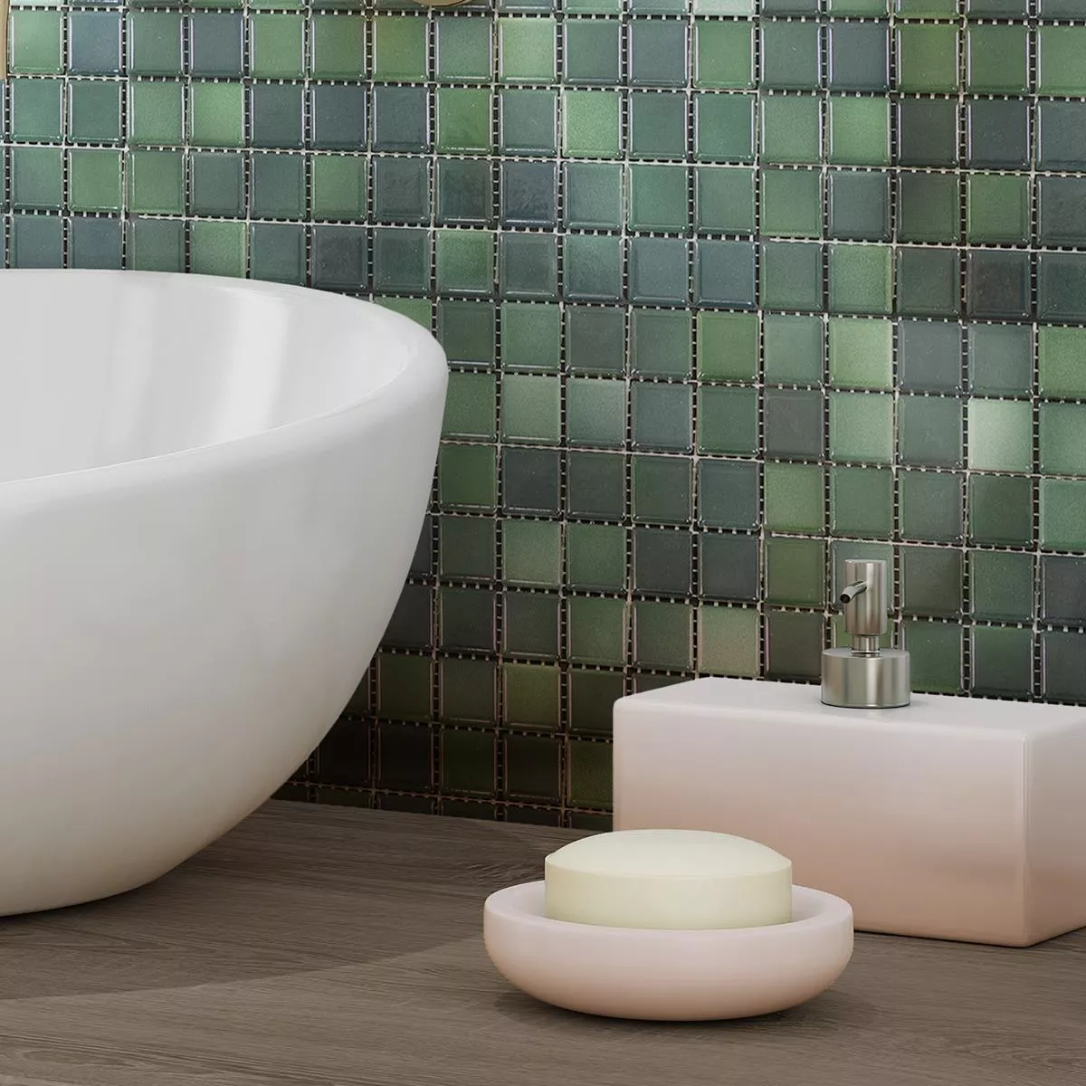 Galleria keramiske mosaikfliser i en forfriskende grøn blanding bringer en unik flair til dine rum med sit elegante metallook og matte overflade. Med stenstørrelsen på 23 x 23 mm og flisemåtten på 29,7 x 29,7 cm, som allerede er limet på et net klar til montering, bliver montering på både vægge og gulve en enkel og præcis opgave.