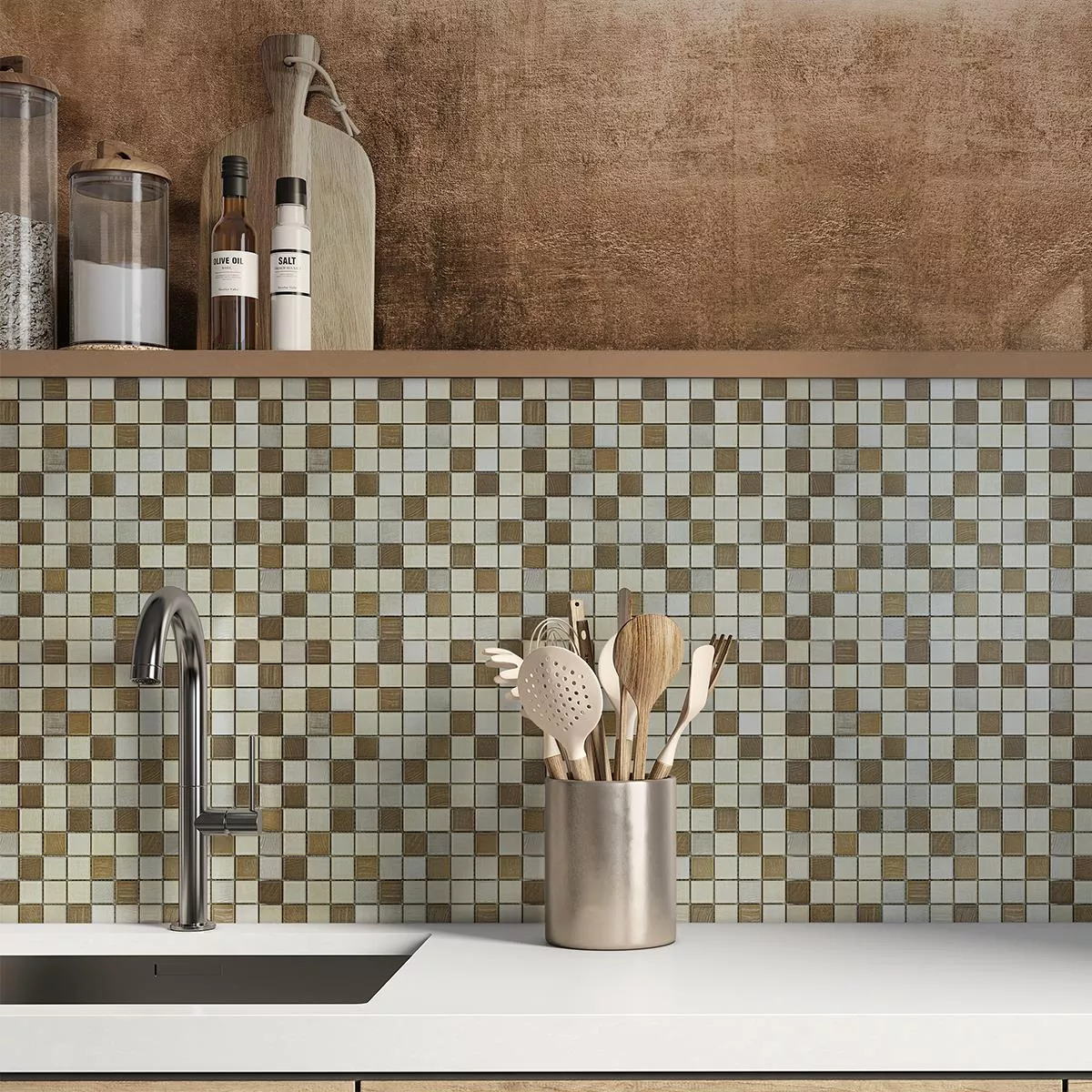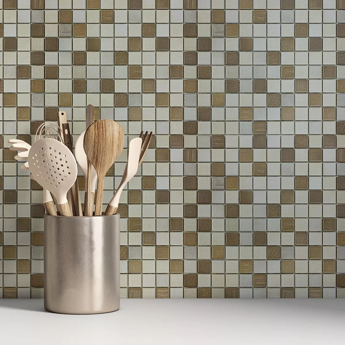 Keramikmosaik Fliser Luminara Imiteret Træ Brun Sølv