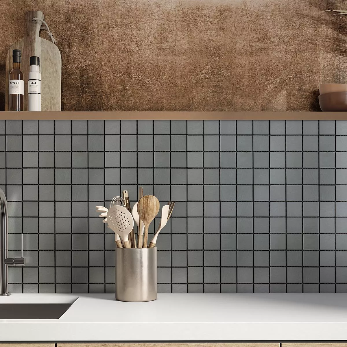 Palazzia keramiske mosaikfliser i stilfuld grå kombinerer moderne æstetik med høj funktionalitet. Deres matte overflade og autentiske stenlook skaber en tidløs elegance, der passer problemfrit ind i forskellige rumkoncepter. Med en stenstørrelse på 47 x 47 mm og en firkantet flisemåtte på 29,7 x 29,7 cm, som allerede er limet på et net klar til montering, er monteringen særdeles nem og præcis.