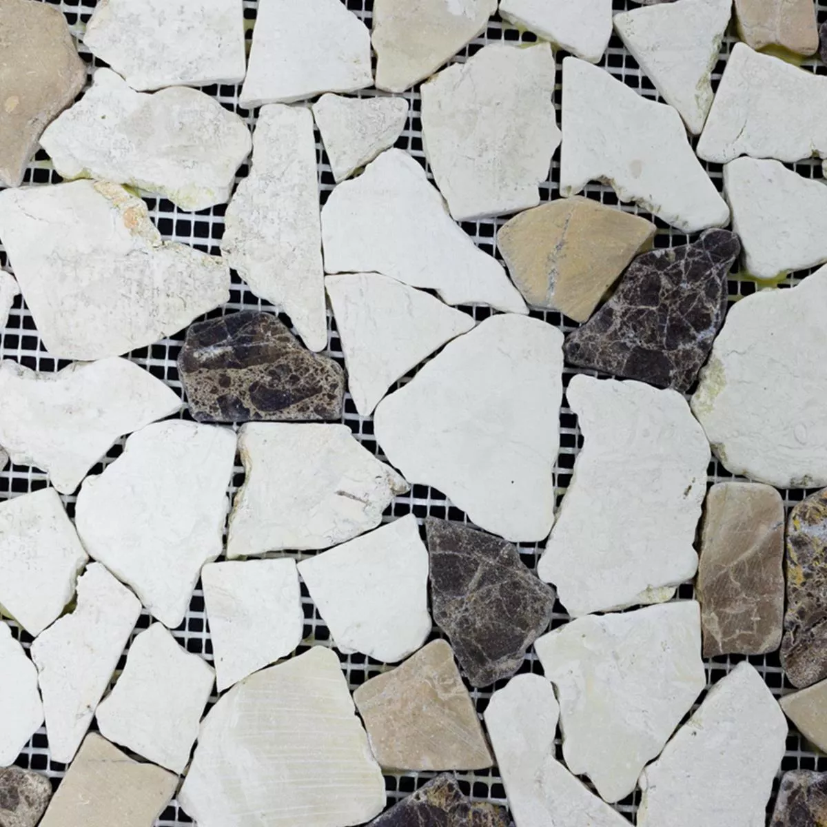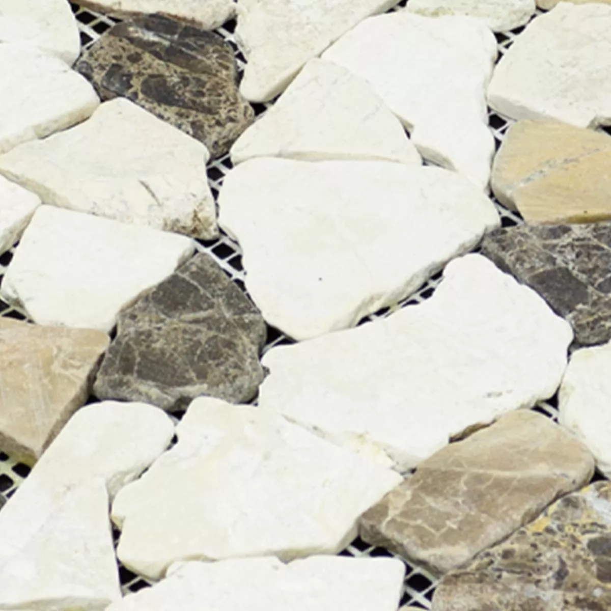 Fordyb dig i den tidløse skønhed med vores marmorbrudte mosaikfliser Dolcevista Brown White. Disse mosaik-, væg- og gulvfliser med variable stenstørrelser fra 15-69 mm tilføjer en varm elegance til dine indendørs og udendørs områder. Den matte overflade og en fugebredde på 0-15 mm understreger marmorens naturlige charme.