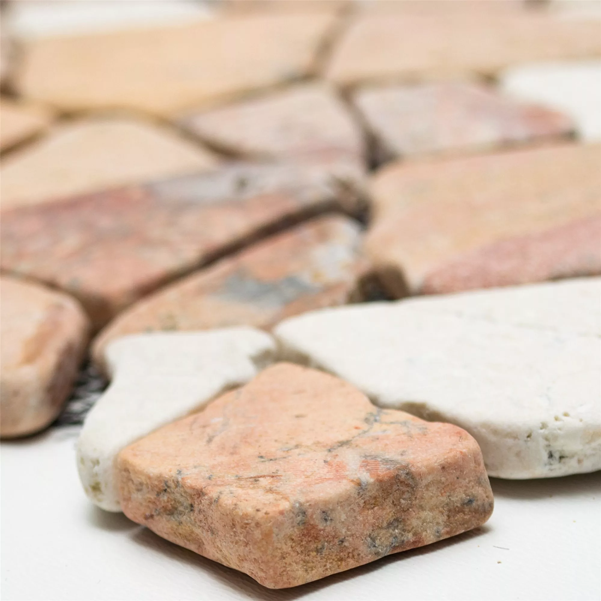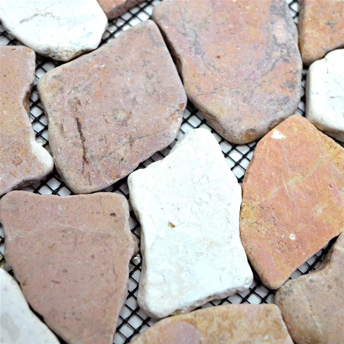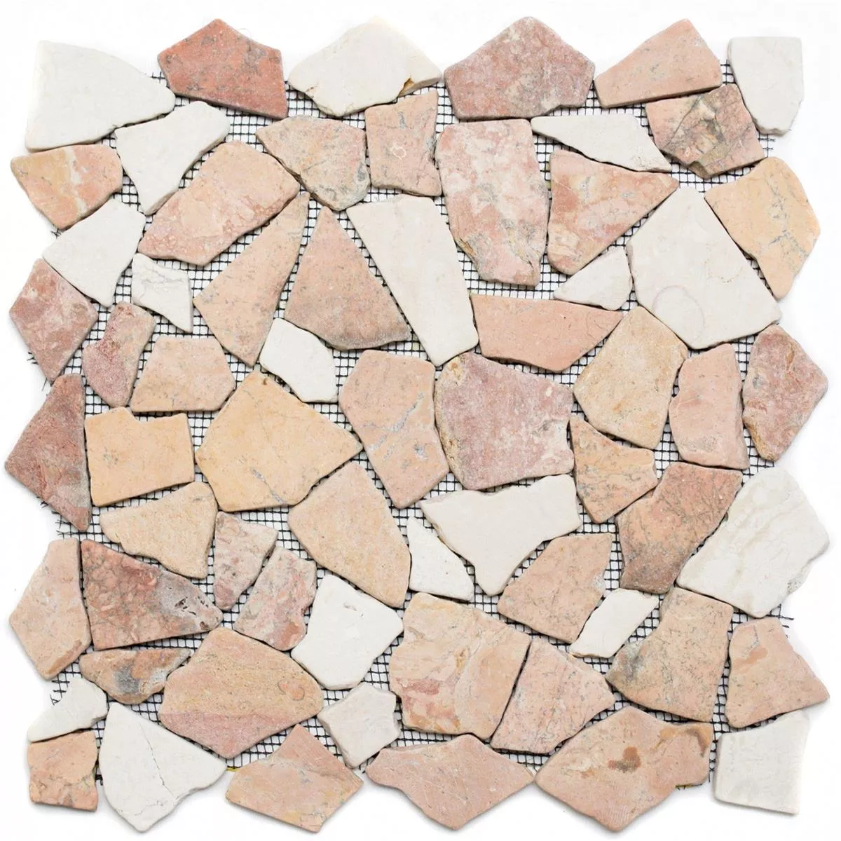 Oplev det luksuriøse udvalg af Poseidon marmorbrudsmosaikken i de elegante farver rød, creme og rosso. Hver måtte af disse udsøgte mosaikfliser har et areal på 0,093 m² og er perfekt til at designe vægge og gulve både indendørs og udendørs. Med en tykkelse på 7 mm og variable stenstørrelser fra 15 til 69 mm sætter denne mosaik imponerende accenter i dit værelse.