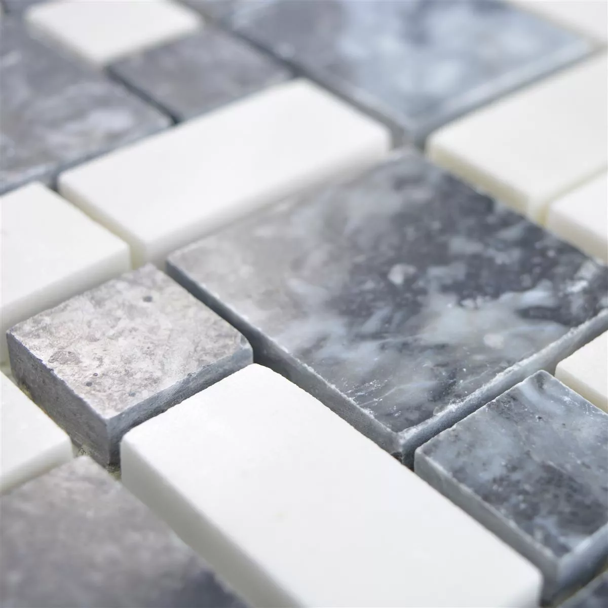 Marmor-naturstensflisen Cordoba i farven sort og hvid giver et ædelt look. Naturstensfliser er tidløse og anses for at være meget nemme at pleje.