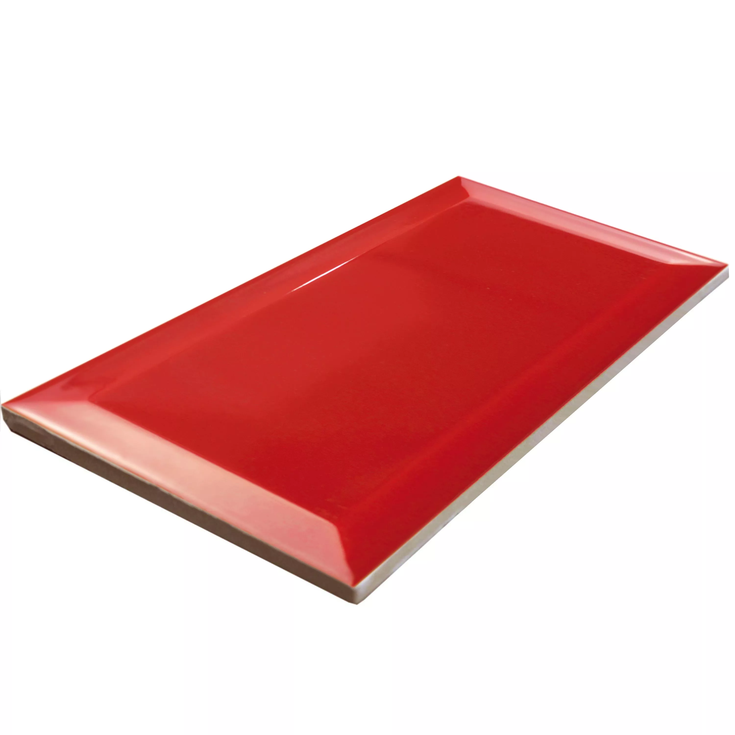 Metro Vægfliser Brussel Med Facet 10x20x0,7cm Rojo