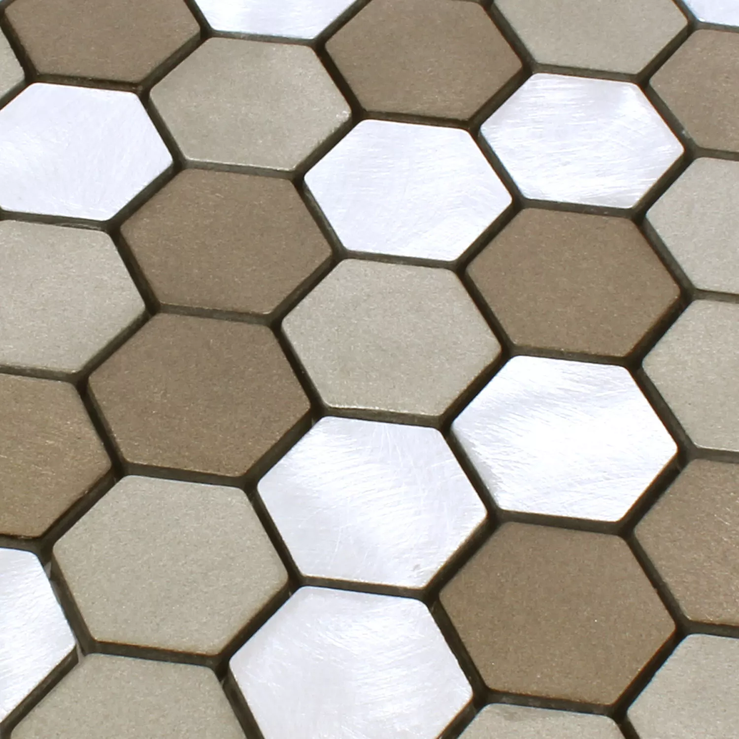 Mosaik Fliser Aluminium Apache Hexagon Brun Sølv