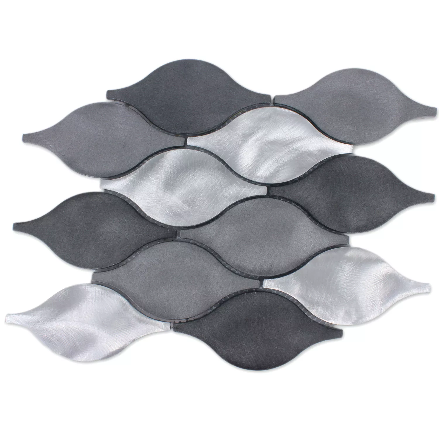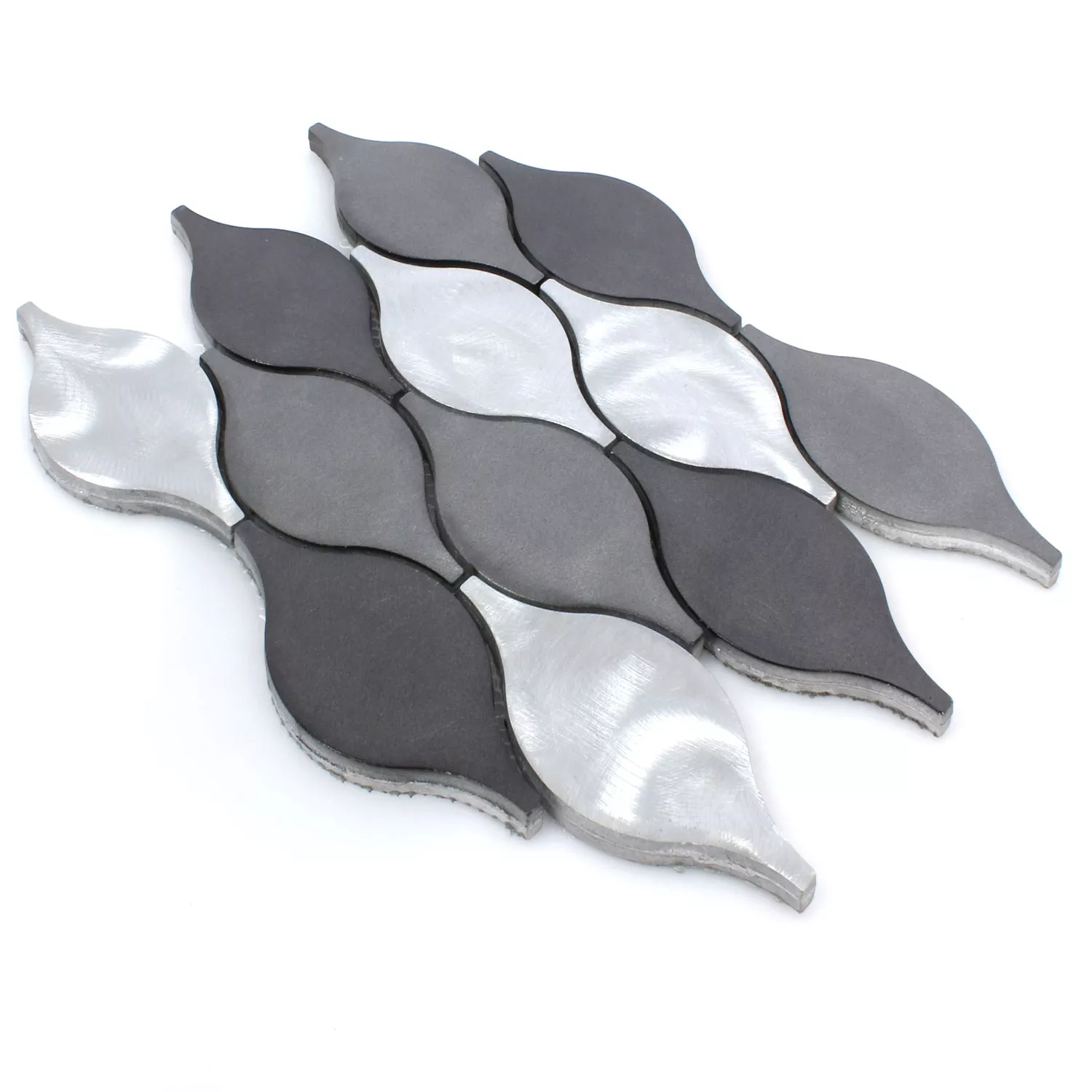 De nuværende Beverly-mosaikfliser i aluminium inspirerer unge og gamle med et unikt ekstravagant design. De små mosaikfliser er lavet i den berømte FLORENTINE stil. Buede linjer og bløde former bringer en hjemlig følelse til ethvert rum i hjemmet med disse smukke Beverly mosaikfliser, lavet af letvægtsaluminium. Derfor er de nemme at vedligeholde aluminium Beverly mosaikfliser et stilfuldt valg ikke kun i sanitære faciliteter såsom badeværelser, toiletter og saunaer, men også i soveværelser og udestuer. Overfladen på Aluminium Beverly mosaikfliserne er børstet, så disse vægfliser imponerer med en mat glans. Farvemæssigt kan du vælge mellem de flotte FLORENTINER fliser i sort og sølv samt i brun og sølv. Derfor kan disse vægfliser også perfekt integreres i ethvert naturligt designet rum. De går godt sammen med trægulve og lofter beklædt med natursten.