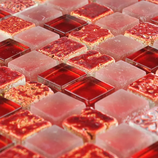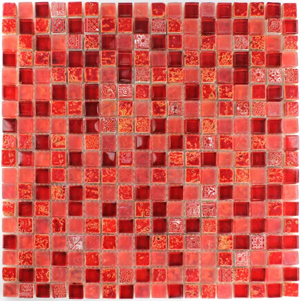Mosaikfliser er meget populære. De er meget velegnede til sanitære rum, krævende erhvervsrum eller stuer. Vores mosaikfliser Escimo Glas Naturstein Mix i farven rød kombinerer glas, marmor, harpiks og kalksten til et dekorativt og samtidig brugbart element. Du er et rigtigt blikfang. Og mosaikfliserne kan gøre dit opholds- og arbejdsrum unikt. Vægfliserne er 8 mm tykke. Dette gør dem utroligt stabile. Hele måttemålet på naturstensfliserne er kvadratisk og har en størrelse på 30,5 x 30,5 cm. Da måtterne er ret store, er det ikke en vanskelig opgave at lægge dem. Du får hurtigt styr på det. Men de enkelte små mosaiksten er 15 x 15 mm store.