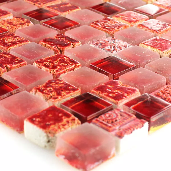 Mosaik Fliser Escimo Glas Natursten Mix Rød