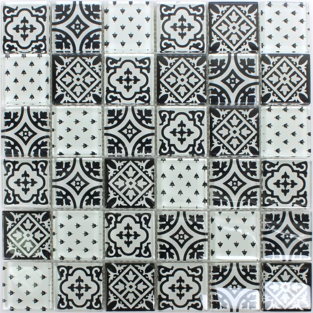 Mosaik Fliser Glas Dante Sort Hvid