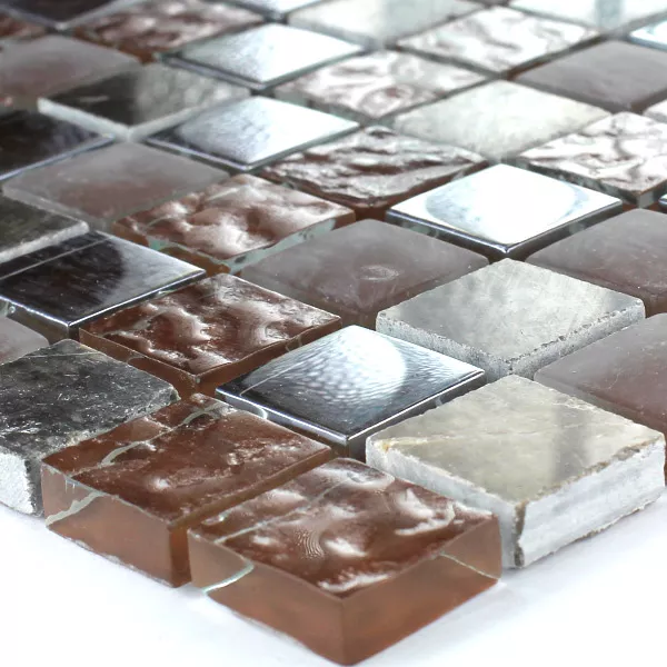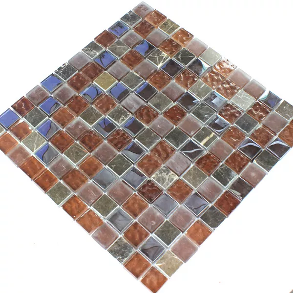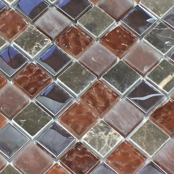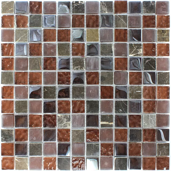 Mosaik Fliser Glas Marmor 23x23x8mm Brun Mix Metal