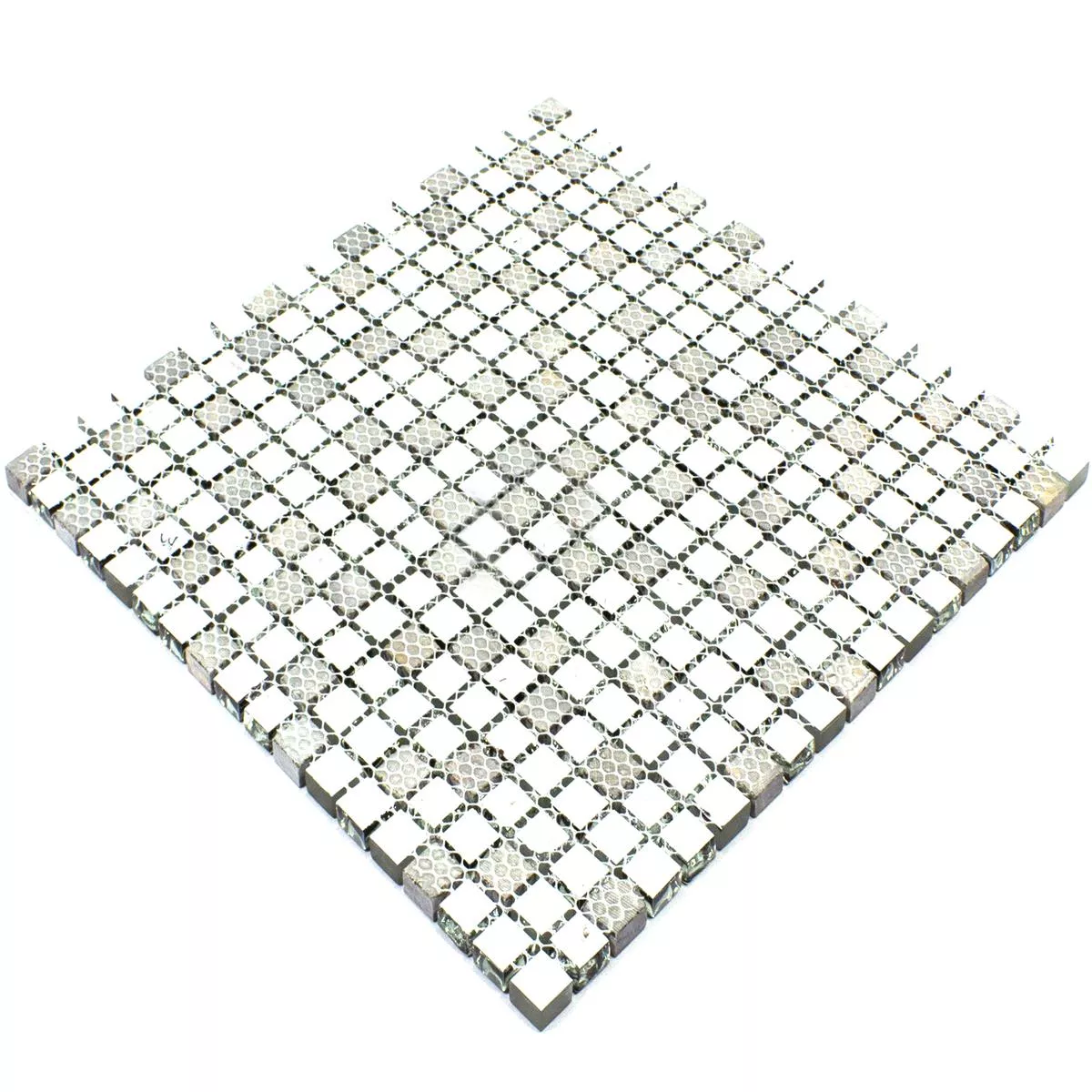 Med en overflade, der er både mat, blank og struktureret, giver den varierede lysrefleksioner og teksturer. Stenstørrelsen er 15x15 mm, mens flisen er 8 mm tyk. Fliserne måler 29,8x29,8 cm, hvor hver måtte dækker 0,089 m².