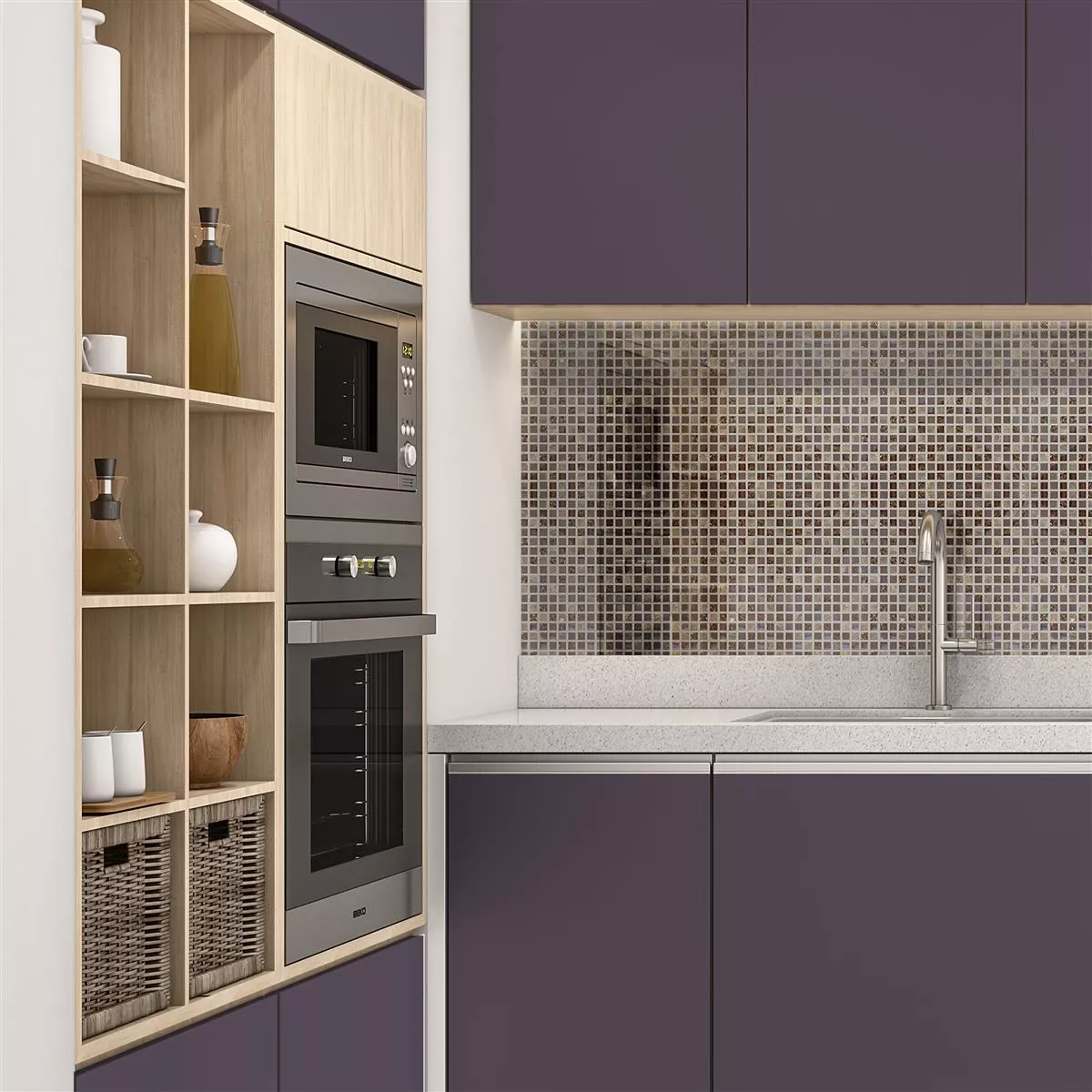 Estrella mosaikflisen i brun kombinerer natursten, porcelænsstentøj og glas for at skabe en attraktiv blanding af materialer. Denne vægflise giver et marmorlignende look og tilføjer et elegant touch til ethvert rum.