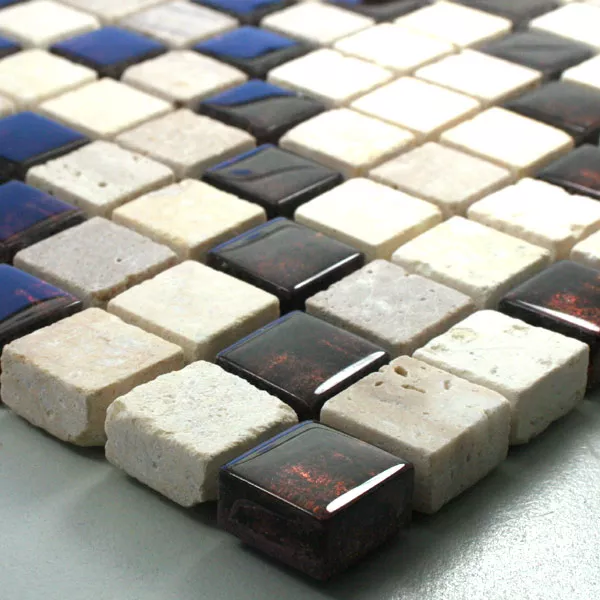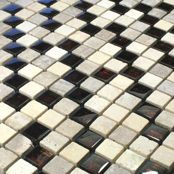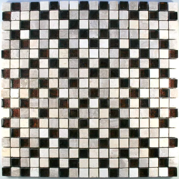 Mosaik Fliser Glas Marmor Metal 15x15x8mm Beige Skifer