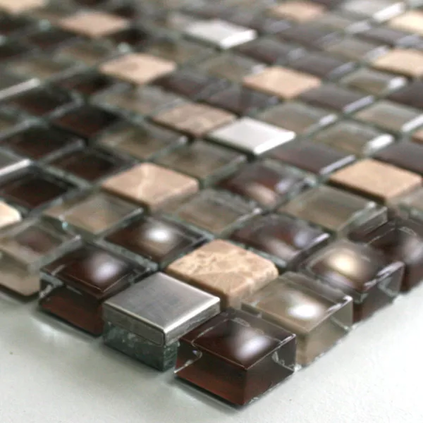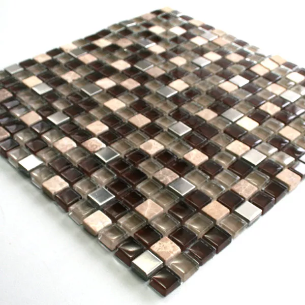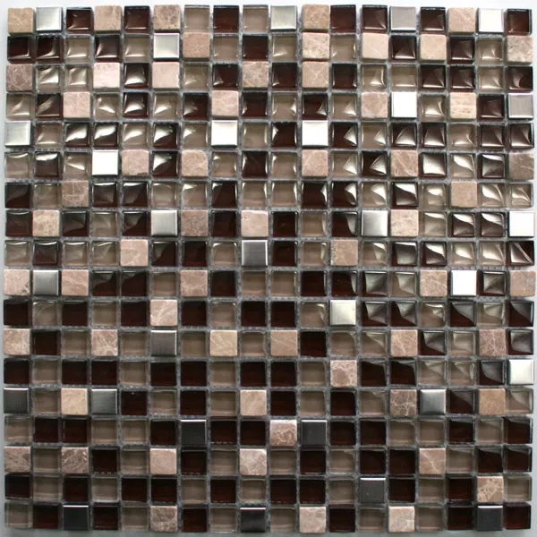 Mosaik Fliser Glas Marmor Rustfrit Stål Brun Mix