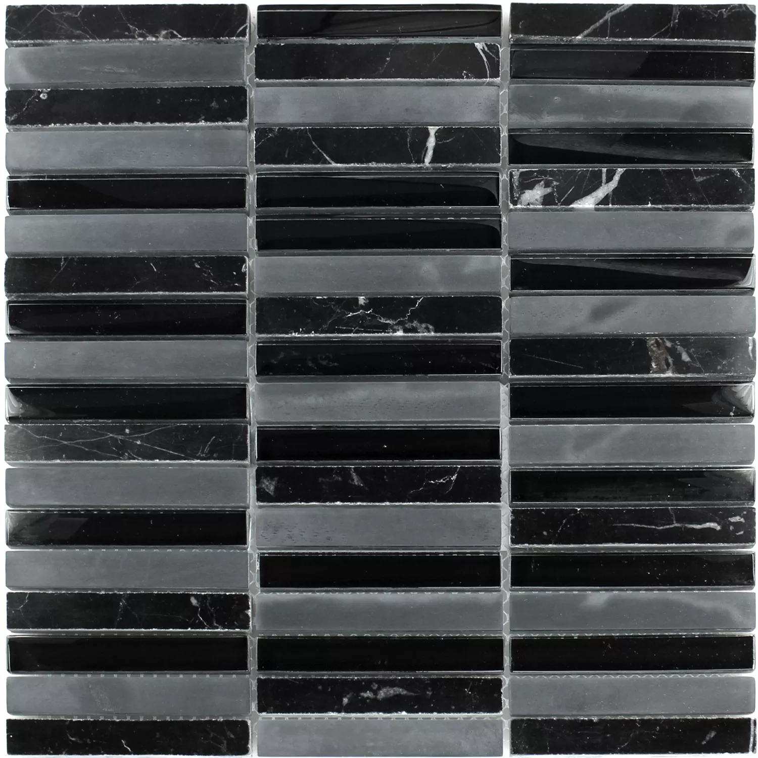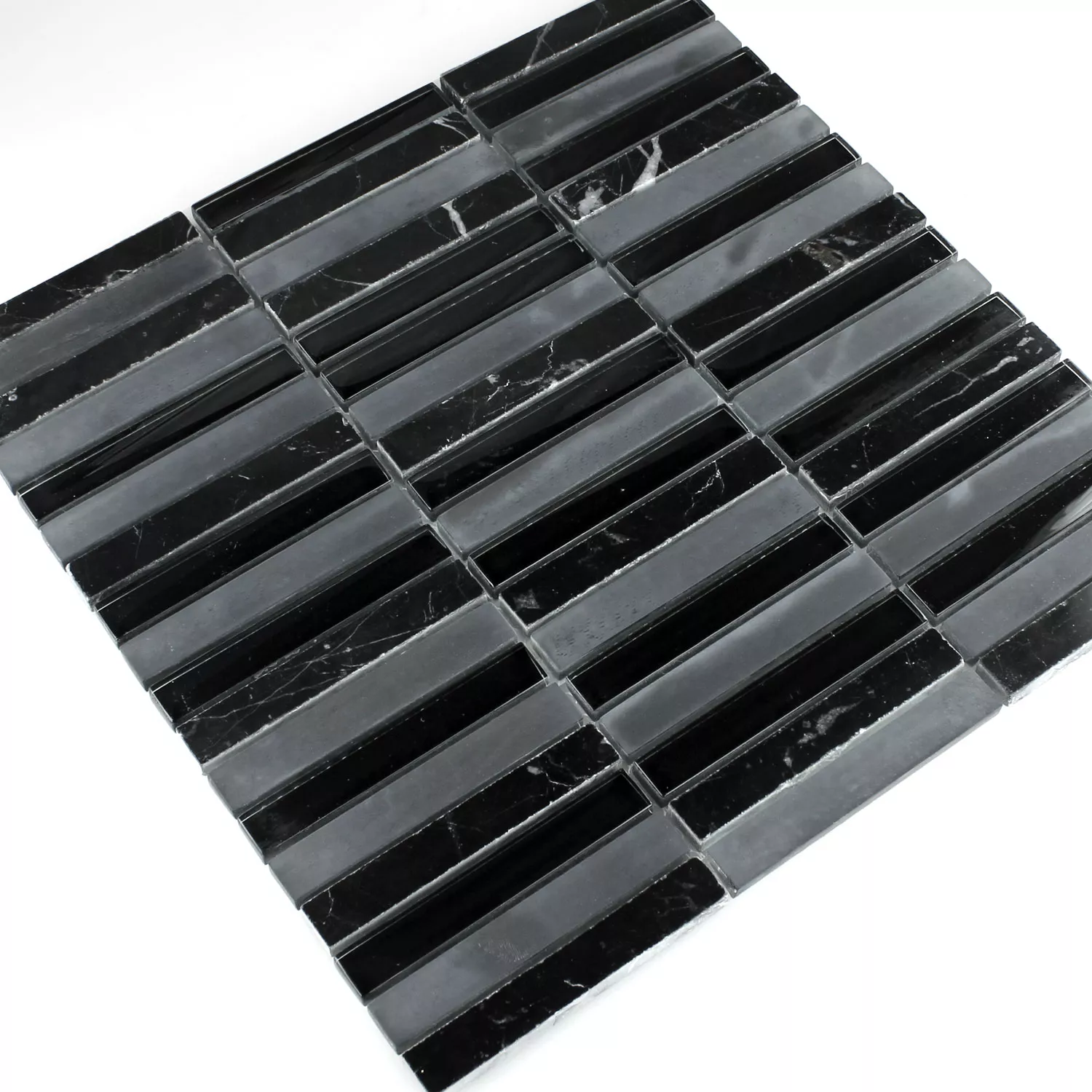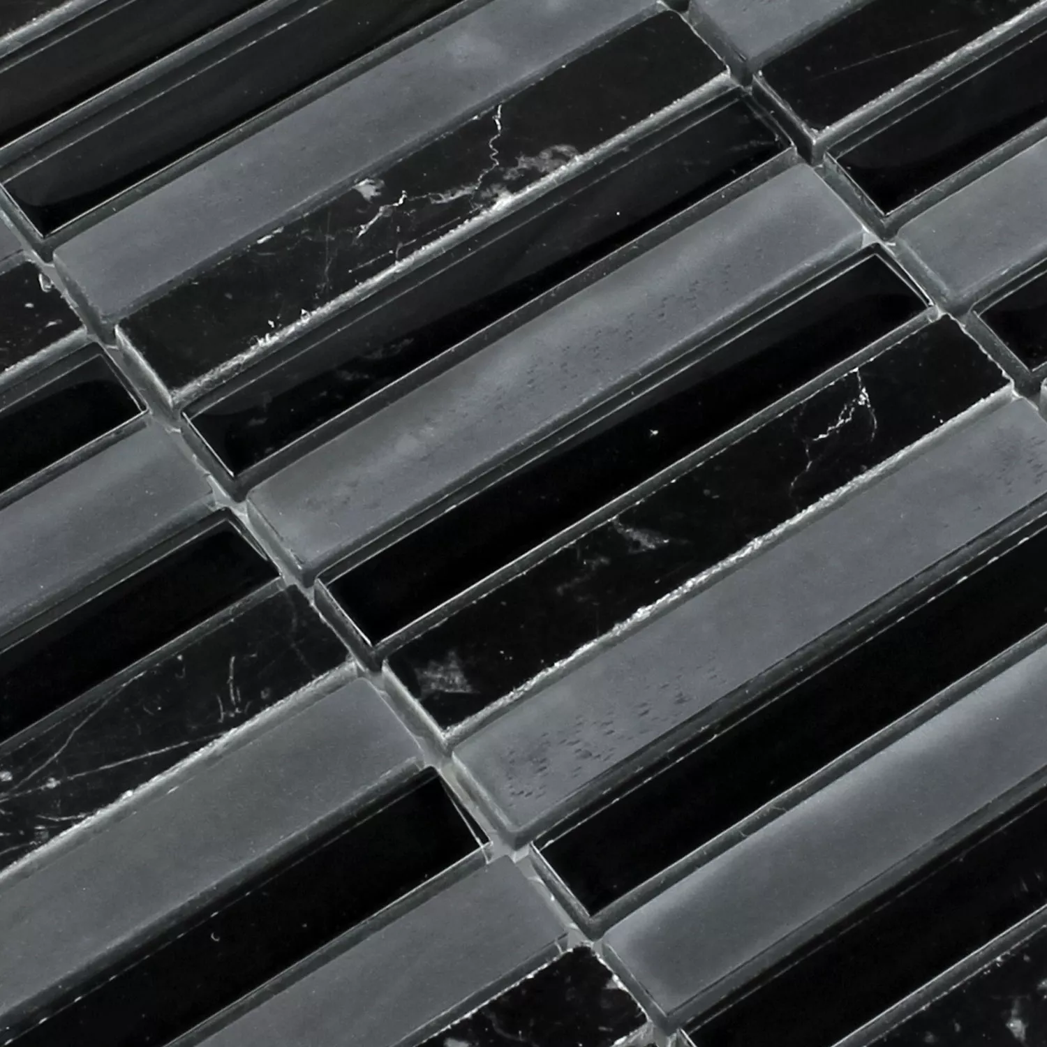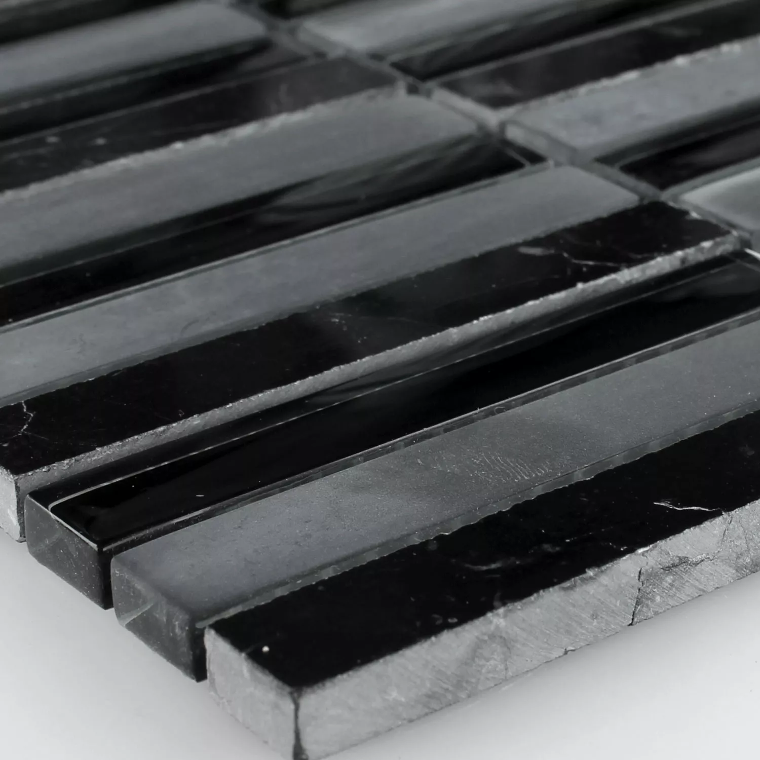 Marmorglasmosaikken i 15x98x8mm sort grå blanding er limet som en flise på bagsiden af et net. Mosaikstenene er ideelle til et kreativt design.