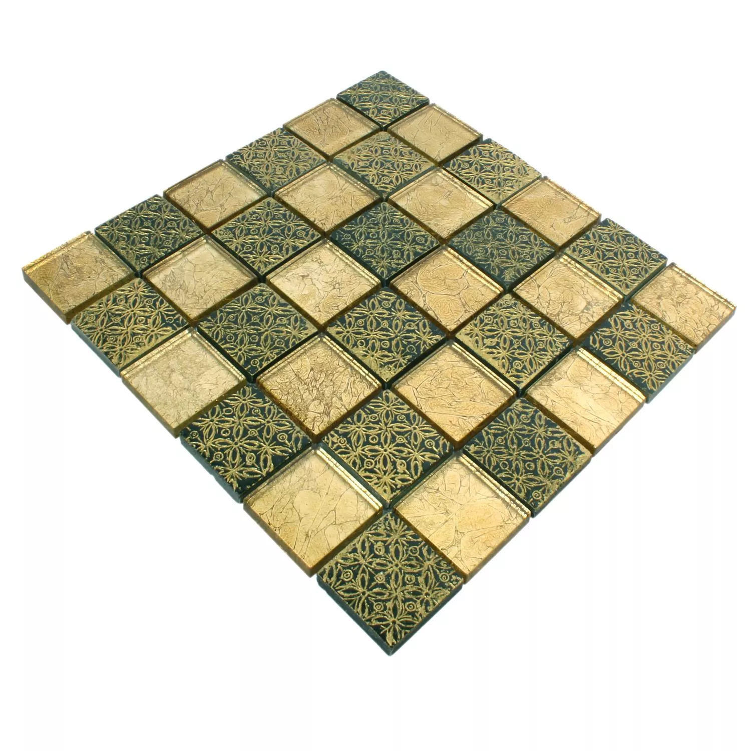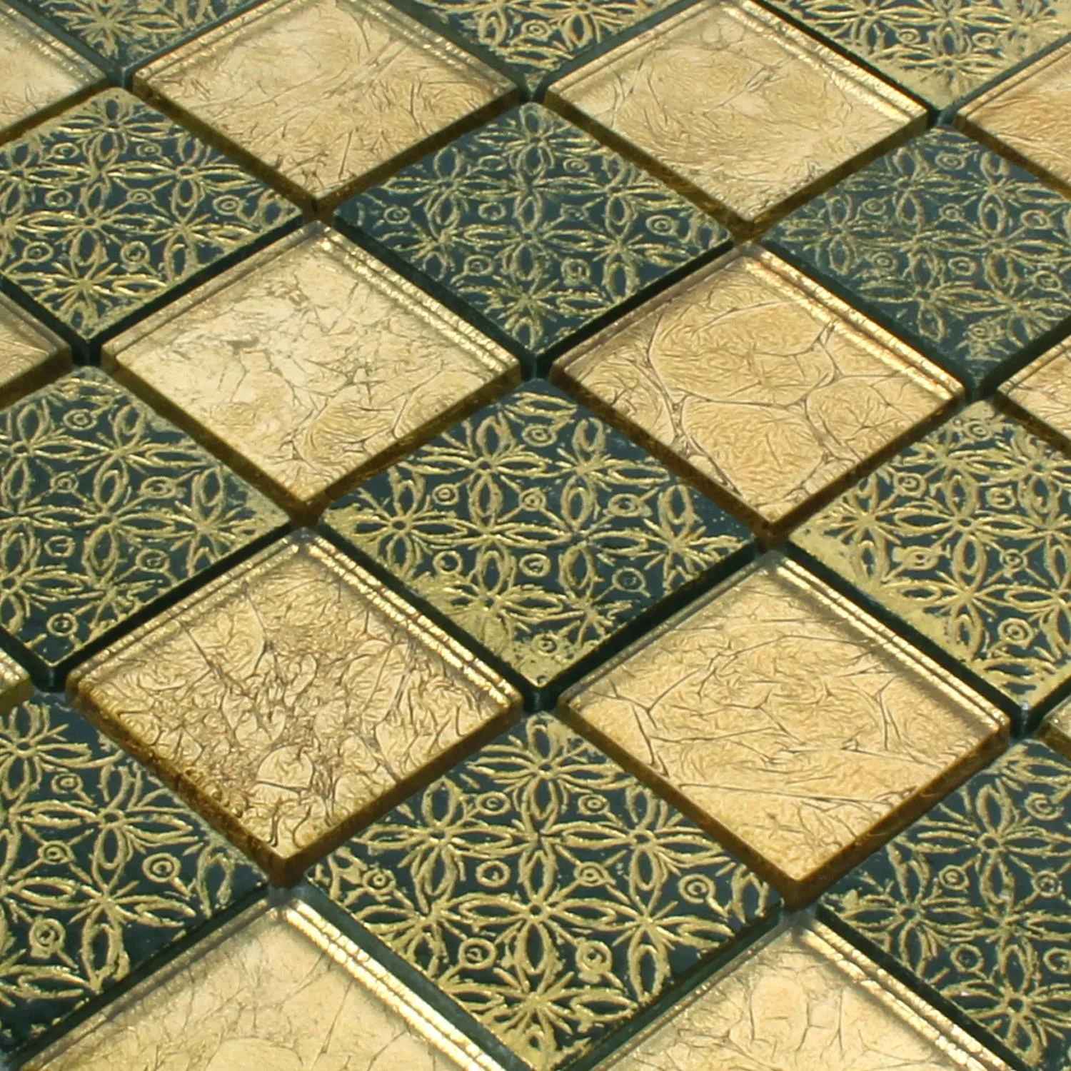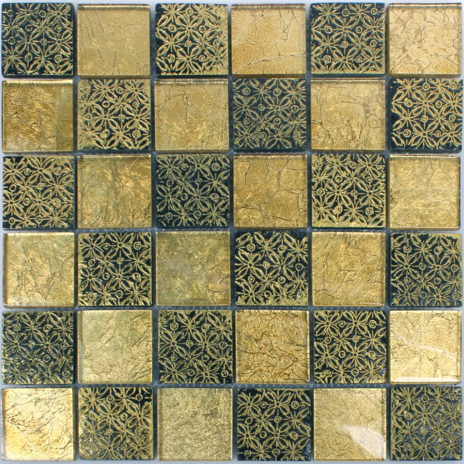 De fine mosaikfliser model Glas Naturstein Friesia i guld imponerer med et sofistikeret, legende design, der bliver et visuelt højdepunkt på væggen. Som navnet antyder, er vægfliser af høj kvalitet lavet af glas og natursten. Den geniale blanding af materialer resulterer i yderligere glitrende effekter, der fremstår særligt varierede for beskuerens øje, når lyset falder.