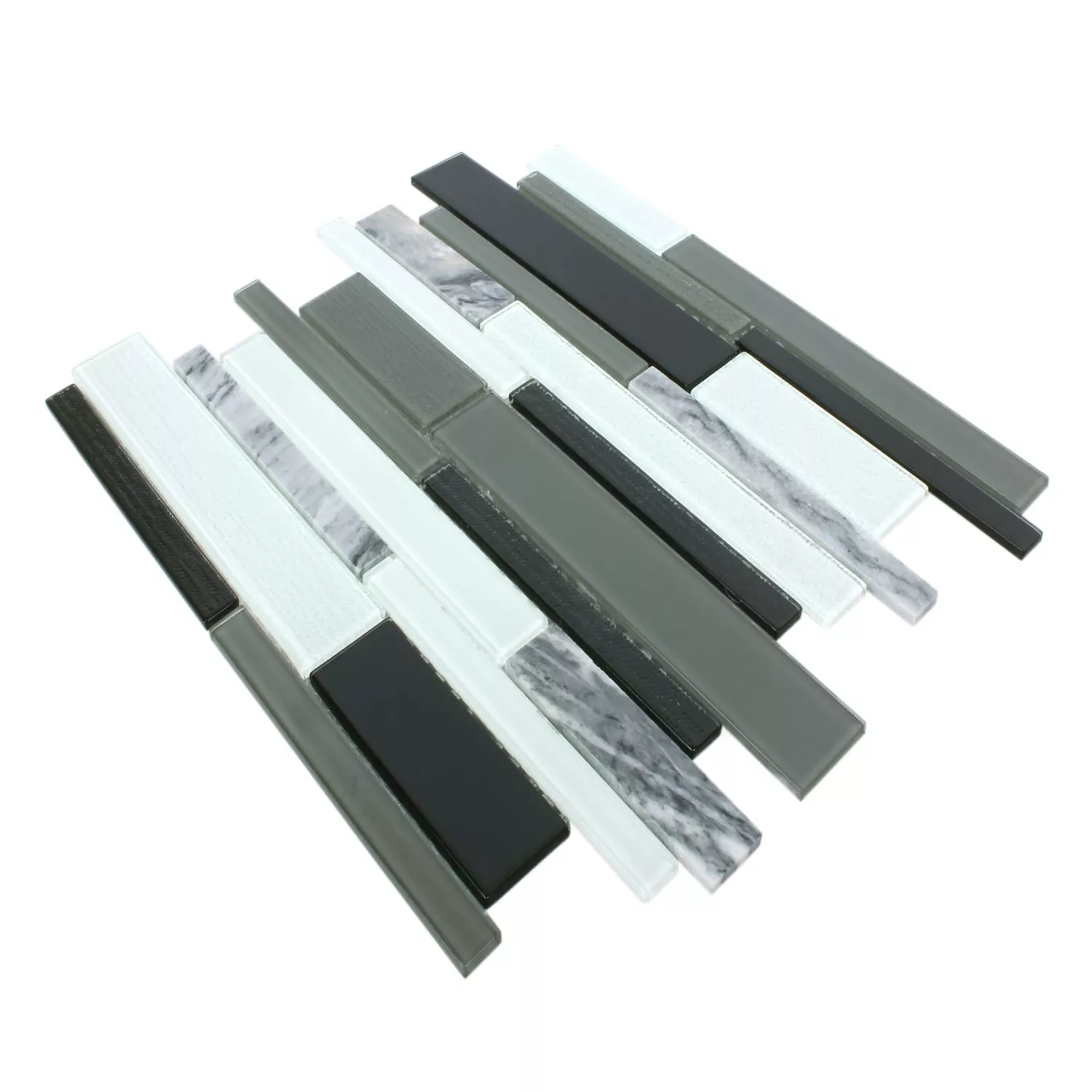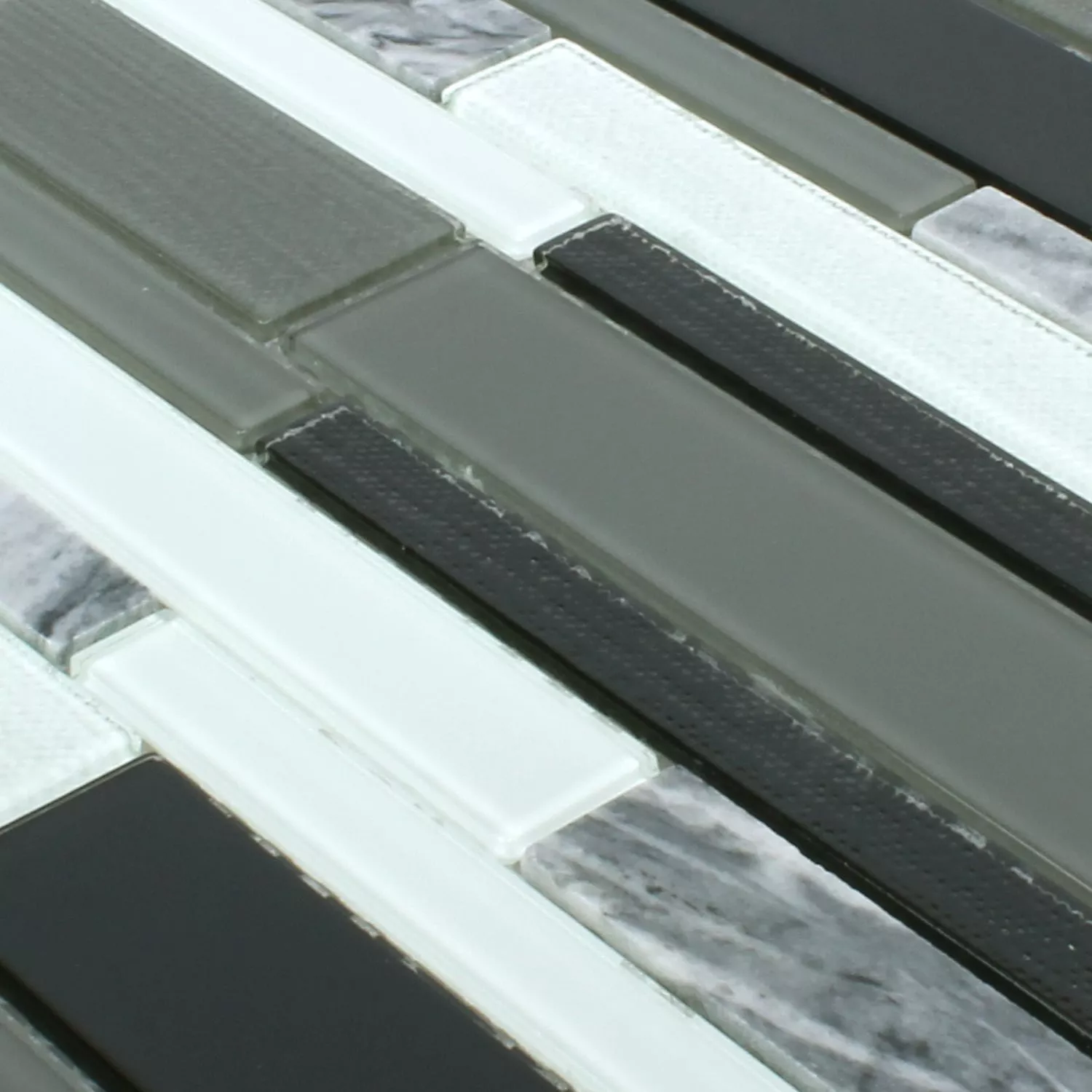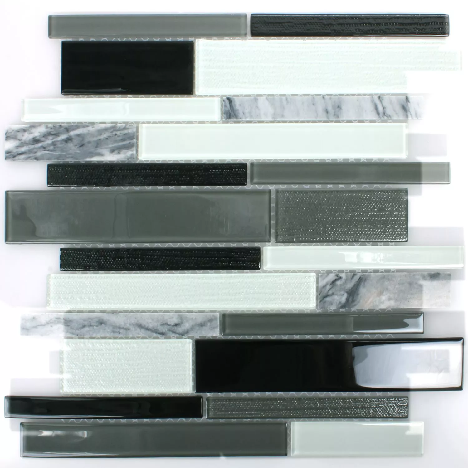 Mosaikfliserne glas natursten Kalamos sort og hvid gør hvert rum, hvor de er lagt, til en helt speciel oase. Disse fliser er leveret som en glasmosaik med naturstenselementer og vil passe perfekt ind i badeværelset. Selve fliserne varierer i størrelse og har et helt specielt overflademønster. Strukturen på glasfliserne er glat, og strukturen på naturstensfliserne er ru. Men fliserne er stadig skinnende og kommer til deres ret på dit badeværelse. Du kan lægge glasmosaikken med naturstensfliser i din bruser.