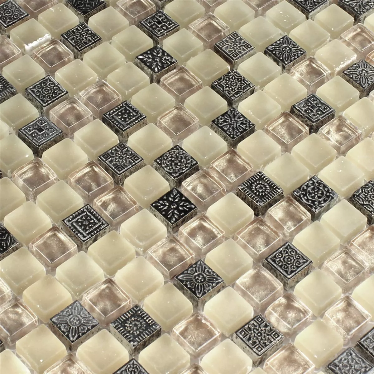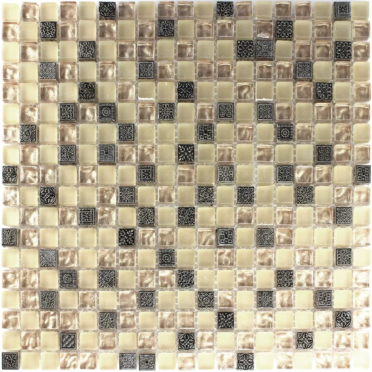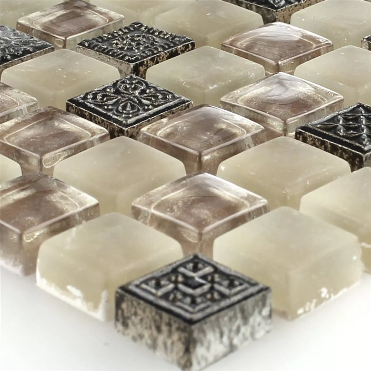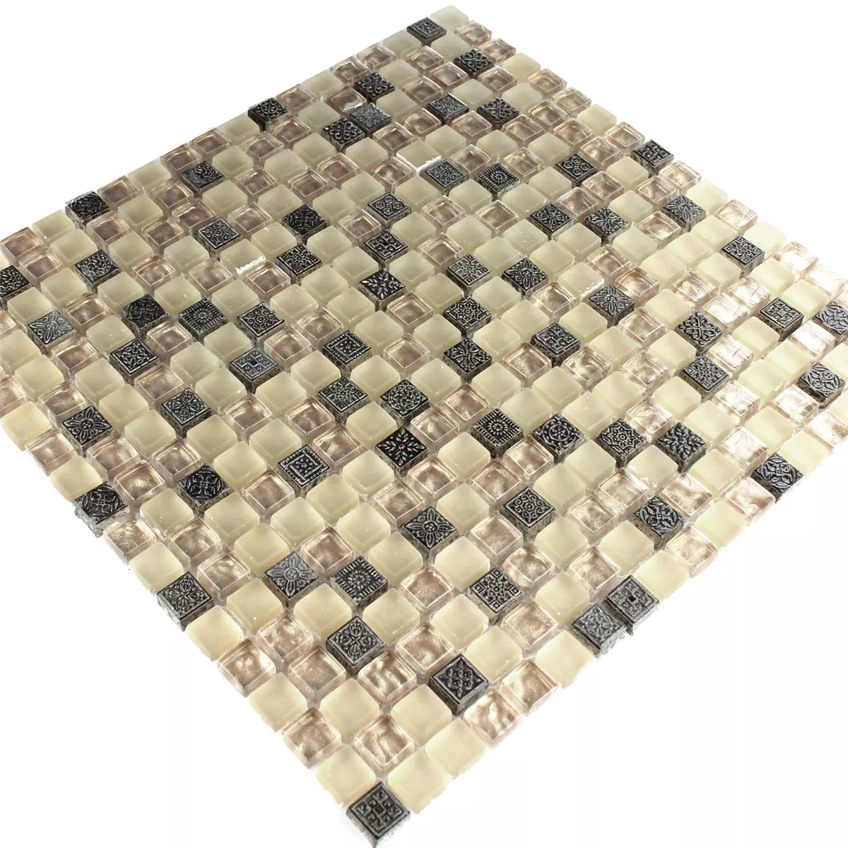Mosaik Fliser Glas Natursten Ornament Beige Skifer Mix