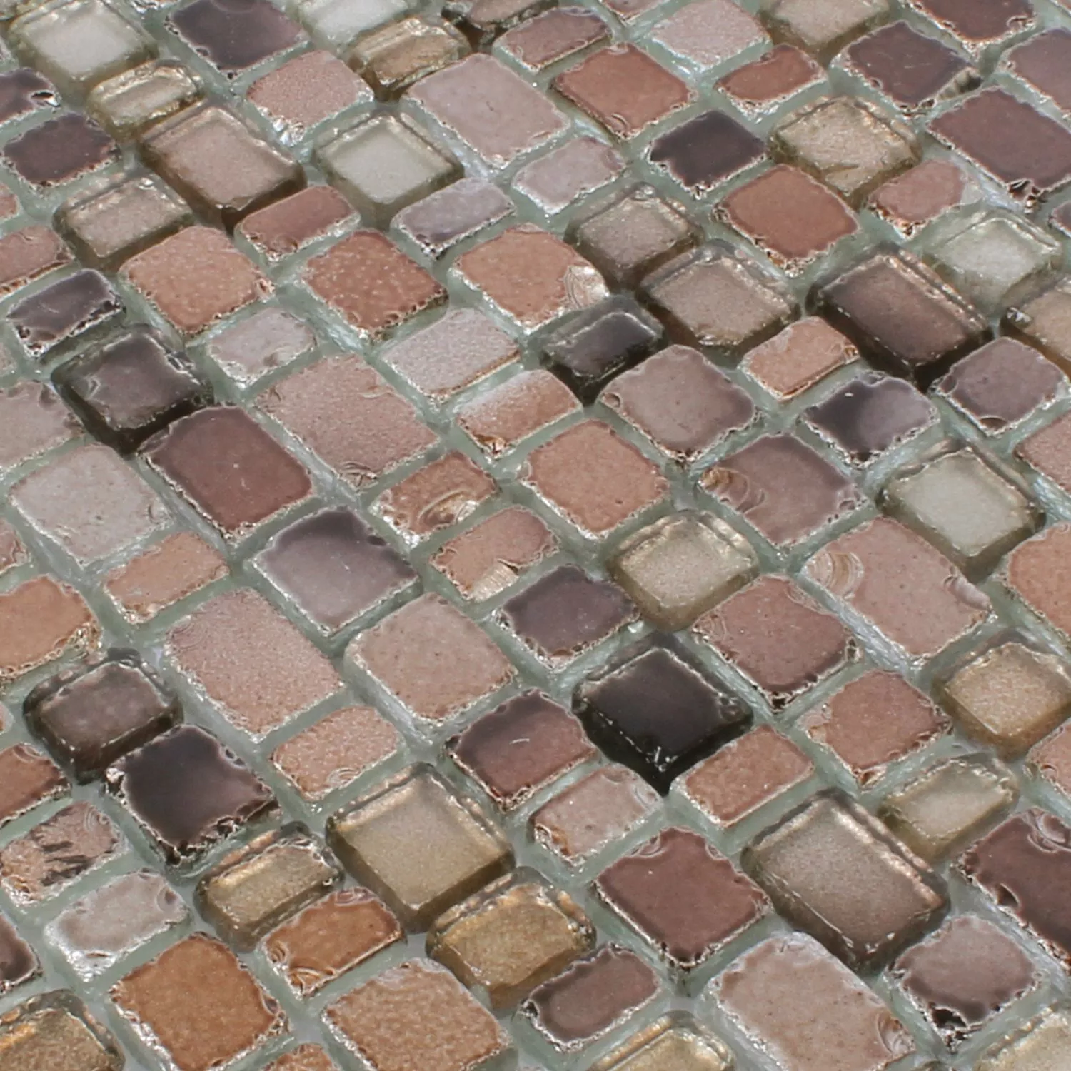 Disse trendy vægfliser fra Glas Roxy-serien i brunt sølv er et godt valg for alle elskere af små mosaikfliser. De smukke glasvægfliser fås i to farvenuancer. Nogle gange er grundfarven på glasmosaikken sort, og nogle gange er den brun. En glasmosaik på væggen er altid nem at vedligeholde, hvorfor disse Glas Roxy mosaikfliser ligner den første dag, de blev lagt, selv efter mange år. Disse vægfliser er det perfekte alternativ til almindeligt tapet og træpaneler. Takket være de mange små sten lavet af glas, hvis overflade skinner subtilt, er der altid nye, spændende looks på væggen, afhængigt af tidspunktet på dagen og lysindfaldet.