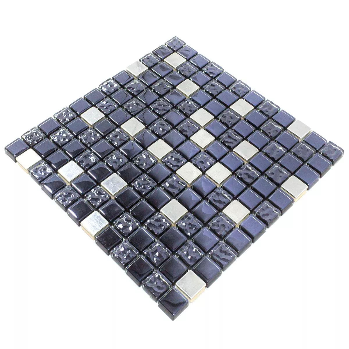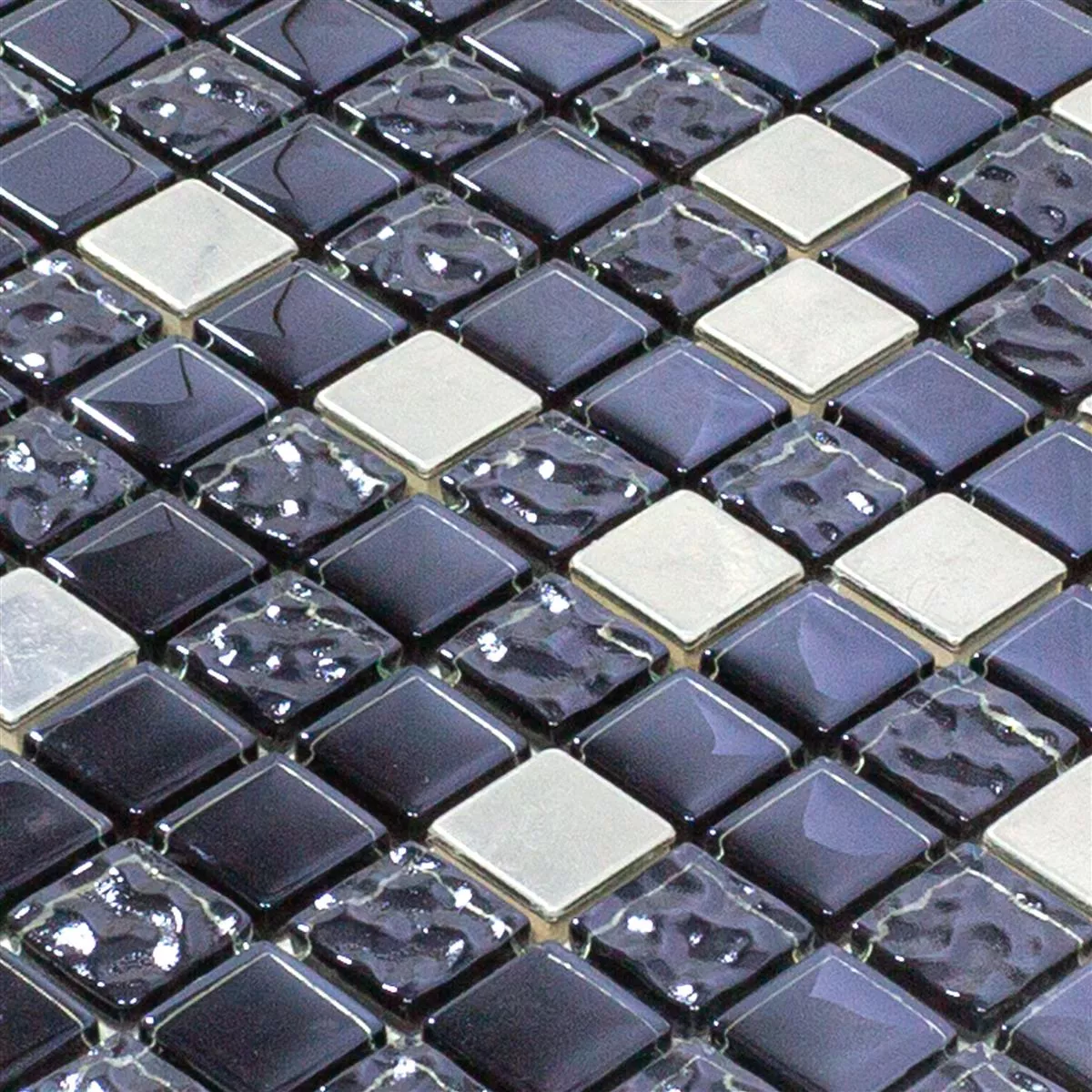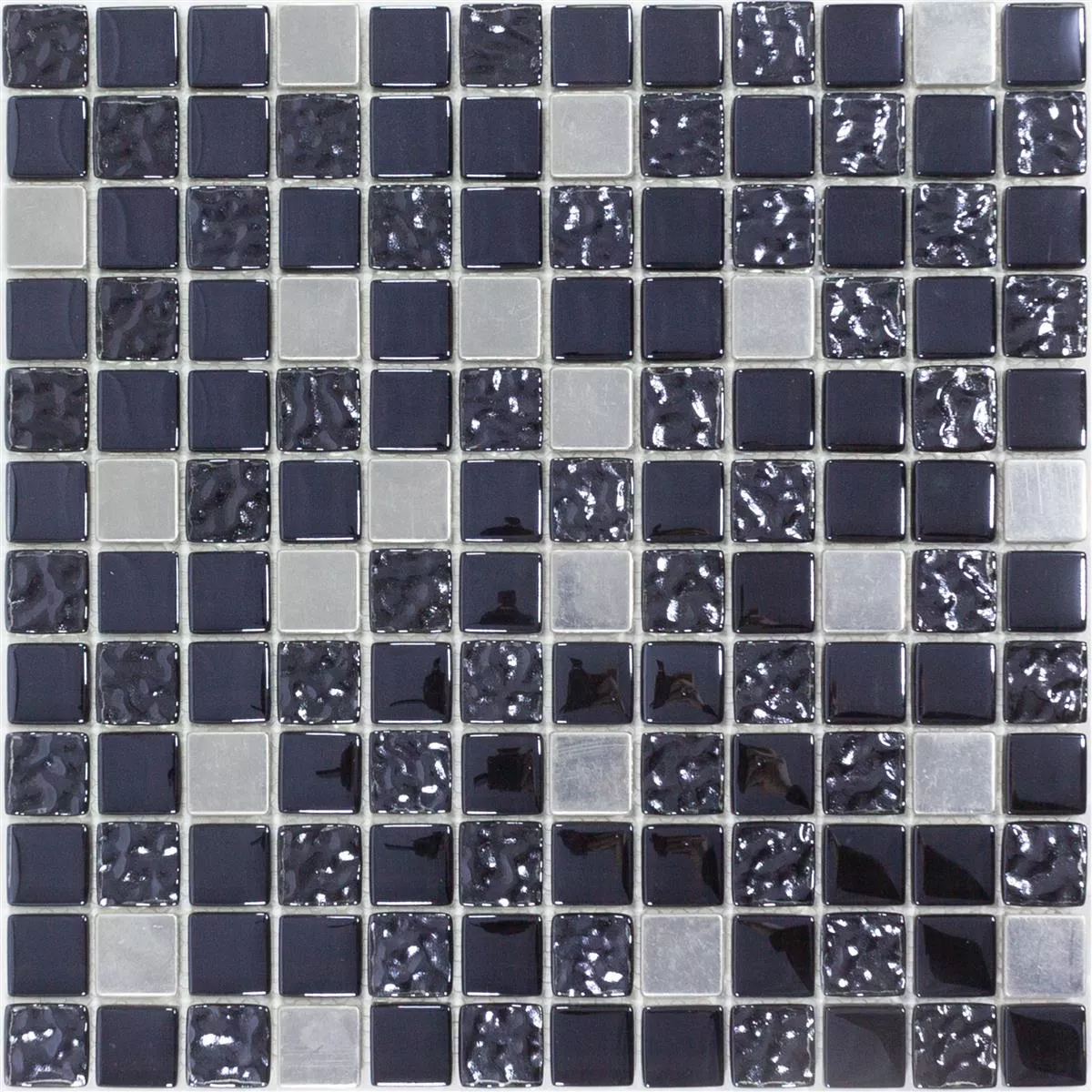 Mosaik Fliser Glas Rustfrit Stål Blackriver Sort Sølv Mix