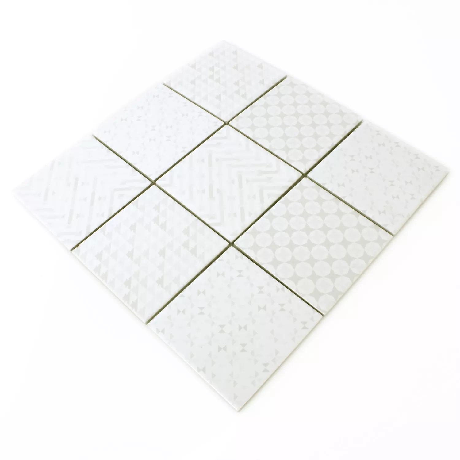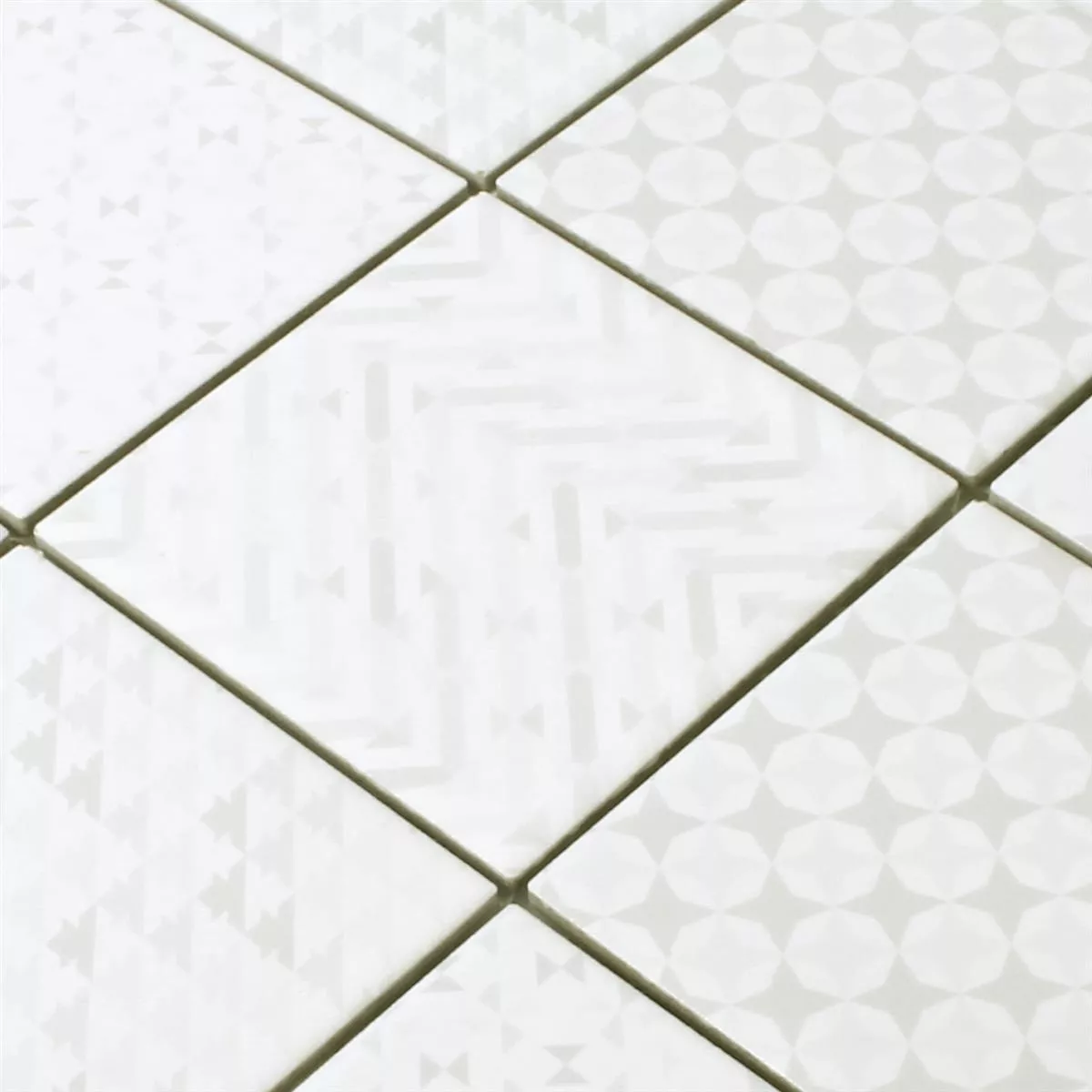 Mosaik Fliser Keramik Cement Optik Geo Hvid
