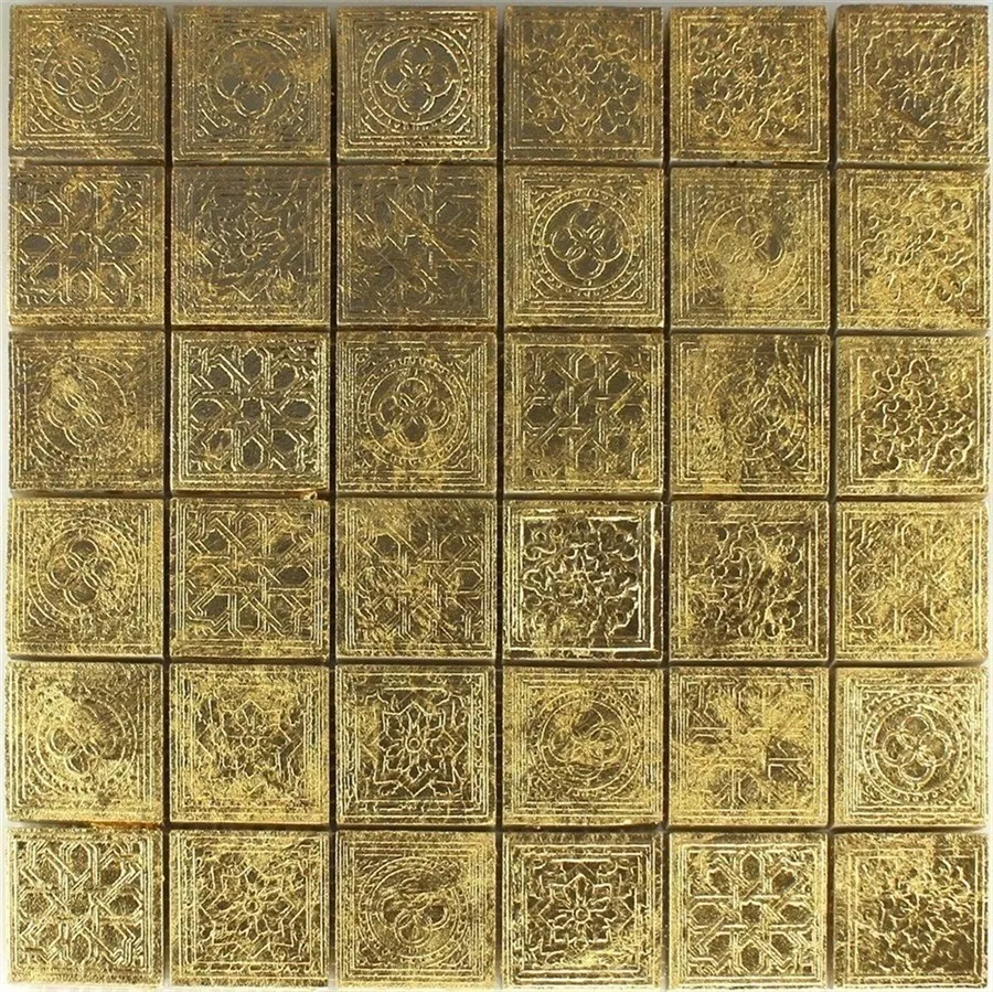 Mosaik Fliser Keramik Guld 48x48x10mm