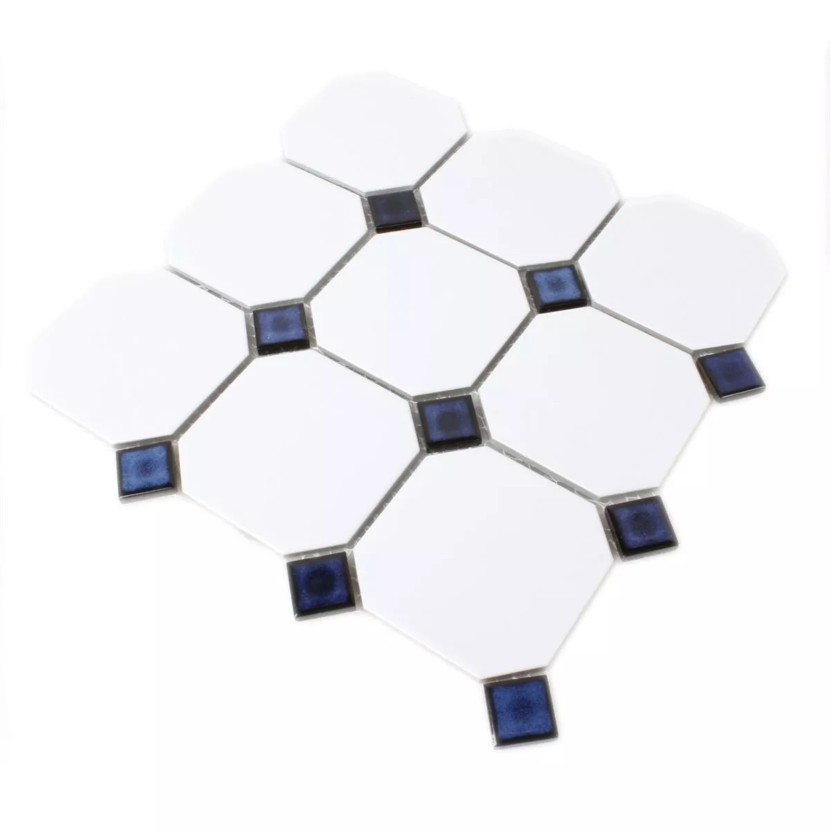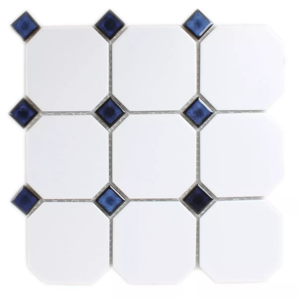 Keramik Mosaik Fliser Octagon Belami Hvid Blå