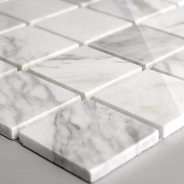 Mosaik Fliser Marmor 48x48x8mm Hvid Poleret