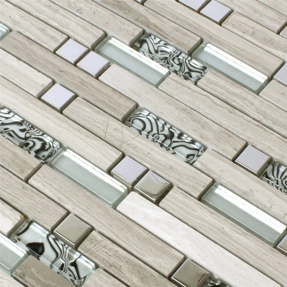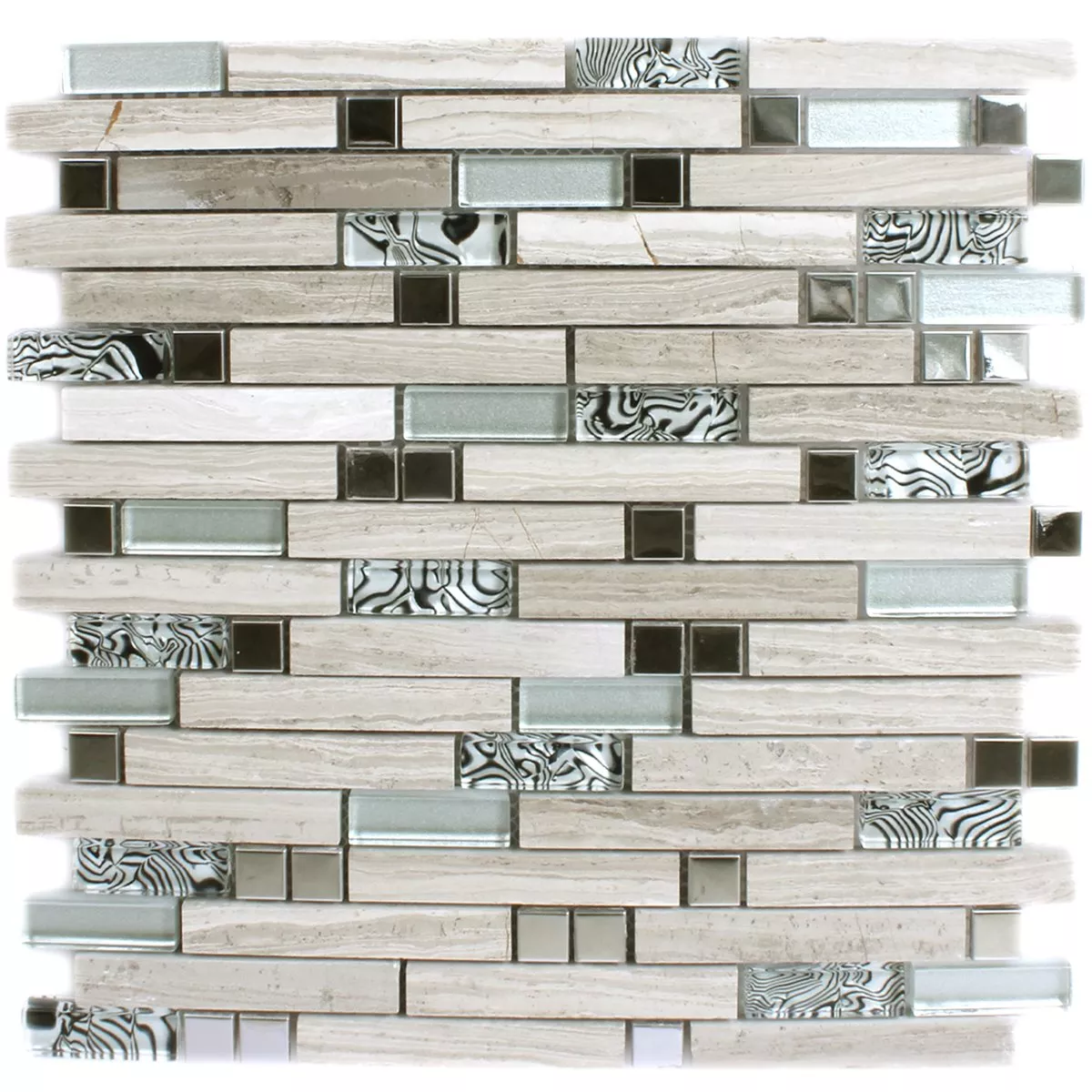 Mosaik Fliser Metal Glas Natursten Gra Sølv Sort Mix