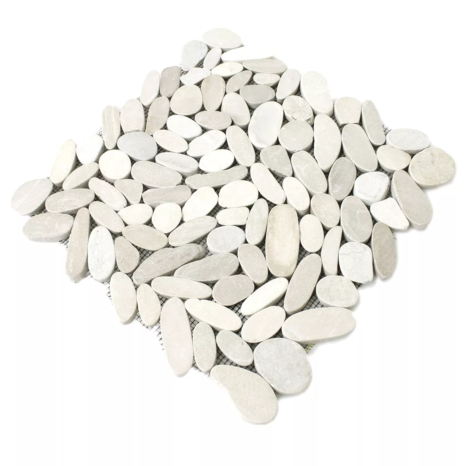 Mosaikfliesen Flusskiesel Burgas Geschnitten Weiss