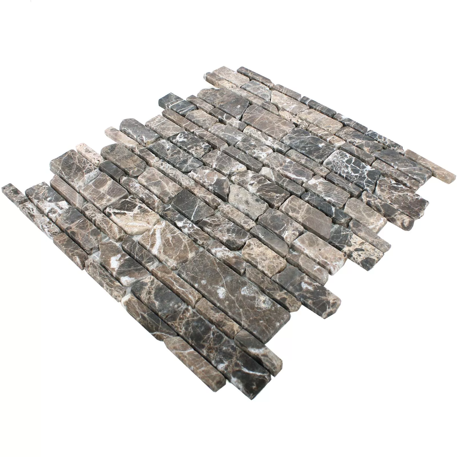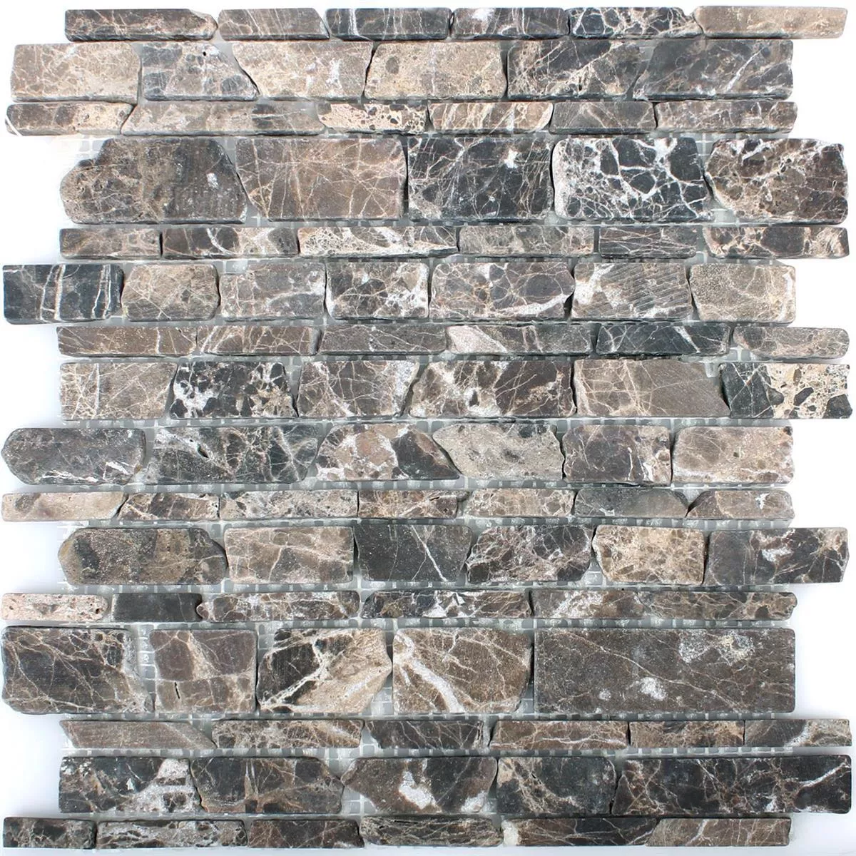 Havel Brick Castanao mosaikfliser i marmor giver badeværelset et rustikt, naturligt udseende. Den fås i de to varianter Castanao og Castanao Biancone. Det er brun-sorte toner på den ene side og beige toner på den anden. Spændende accenter kan sættes med disse naturlige marmorfliser. I hvert fald er de rigtige blikfang på badeværelset.