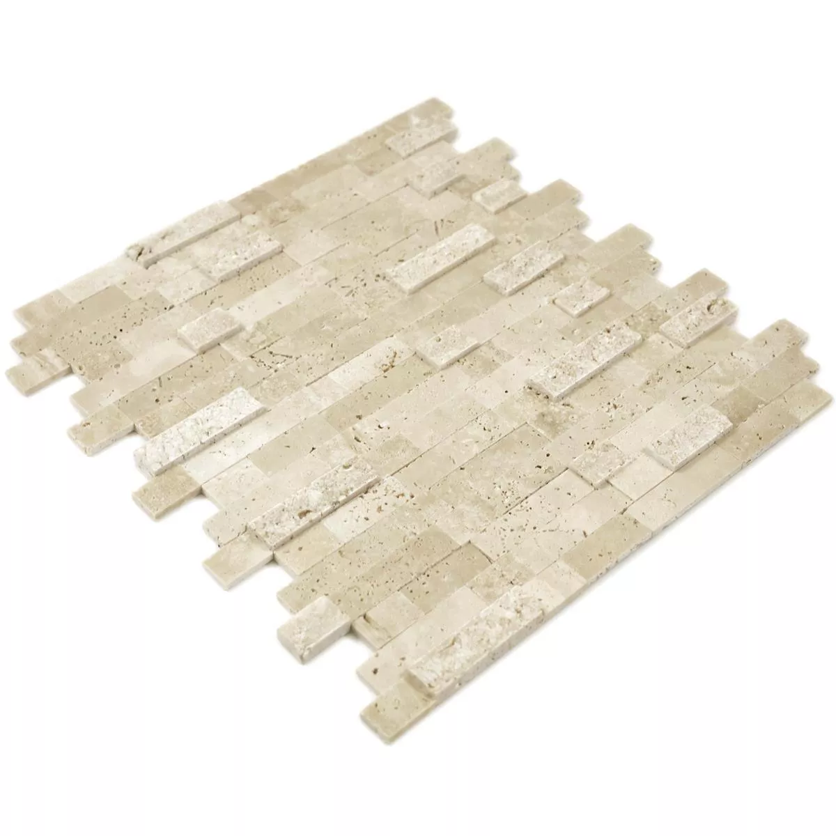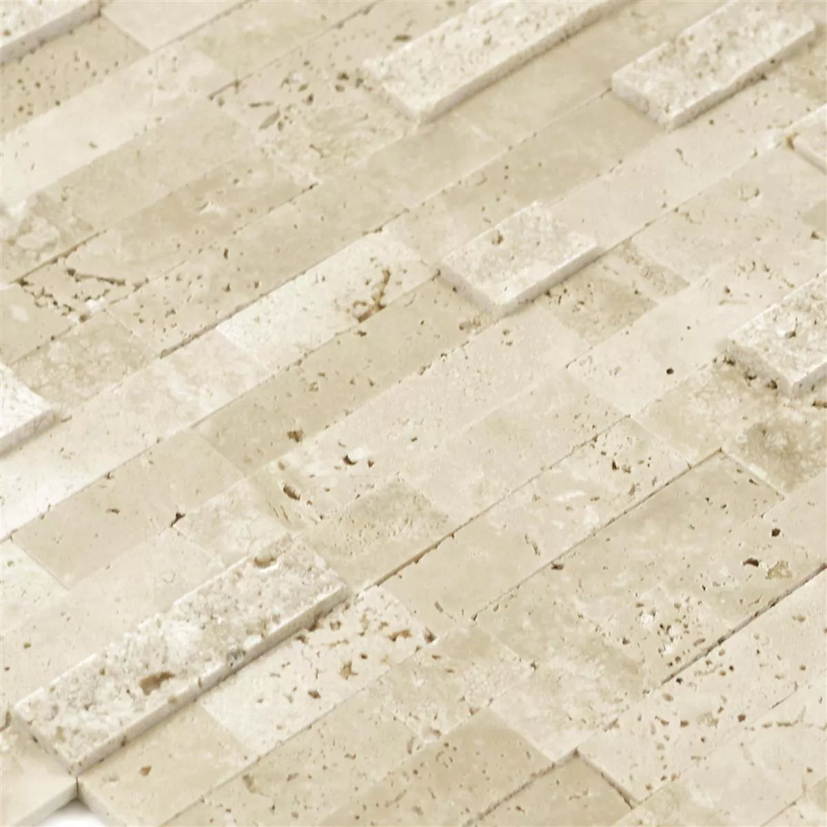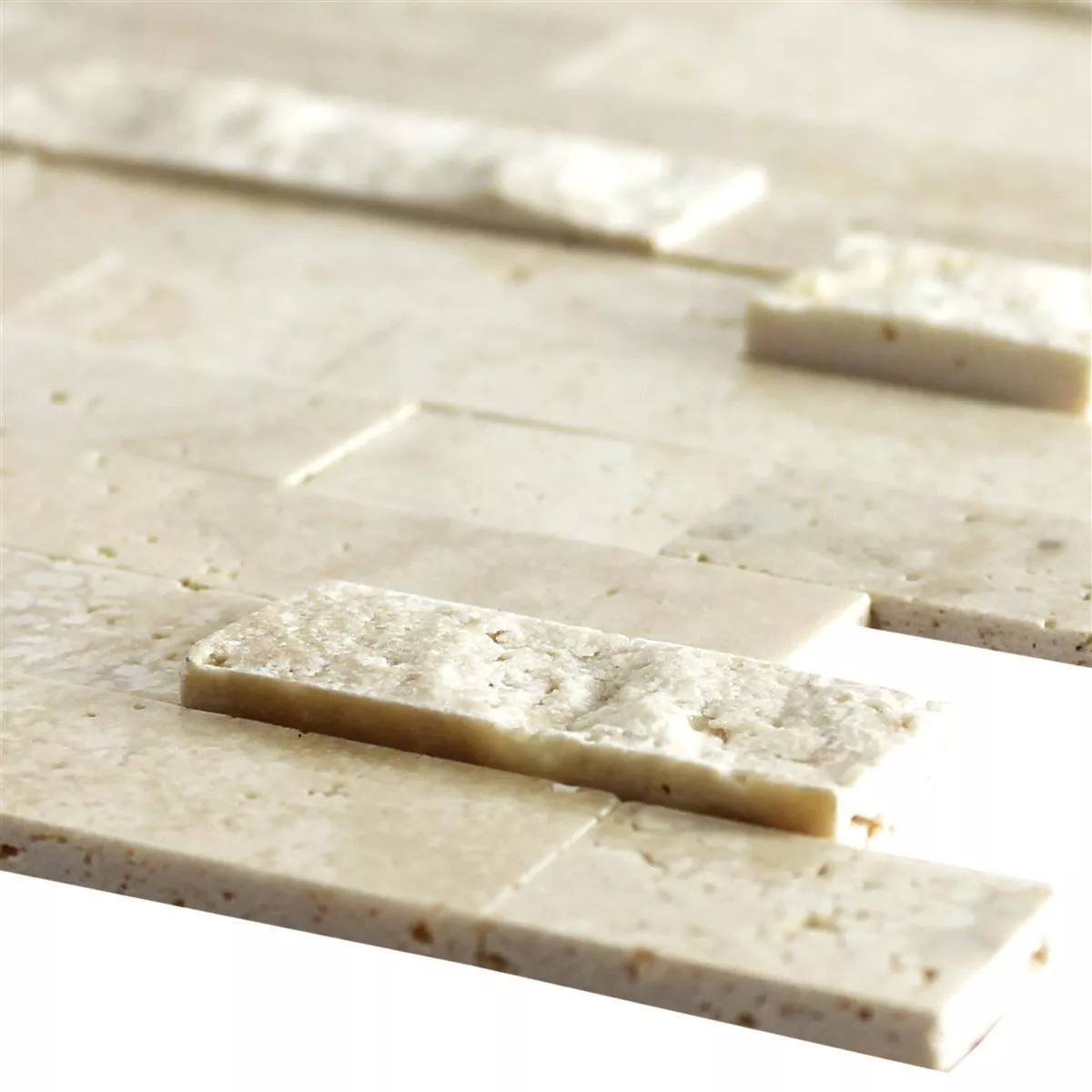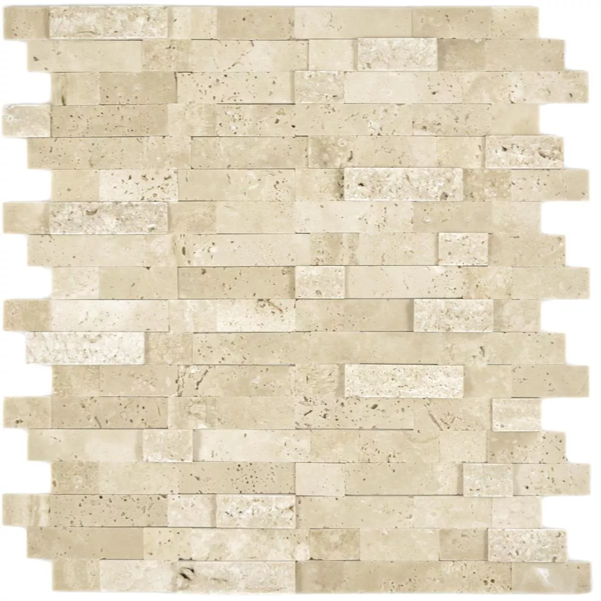 De smukke sten-look fliser er arrangeret i pindeformat og fås naturligvis som måtte. Installationen er meget nem og kræver kun en ren, jævn vægoverflade. Flisemåtternes overflade fås i blank og mat. Tykkelsen kan fås i 4 mm eller 6 mm. Her afhænger det af, om flisen har en 3D-effekt. Marmorfliserne er beige i farven og er beregnet til indendørs brug og kan monteres i rum som entre, køkkener og lignende.
