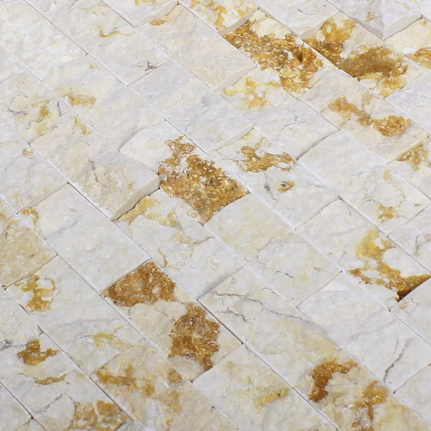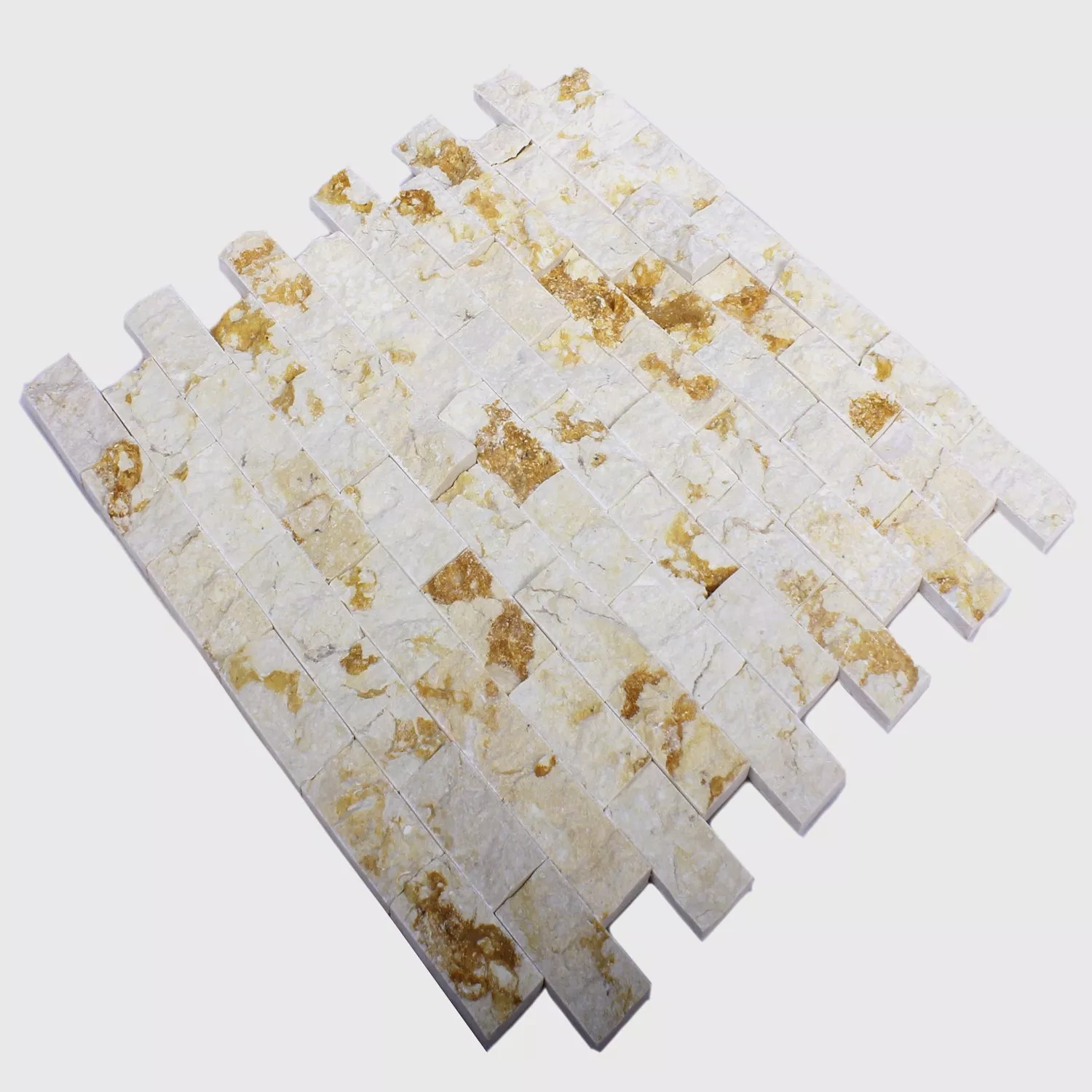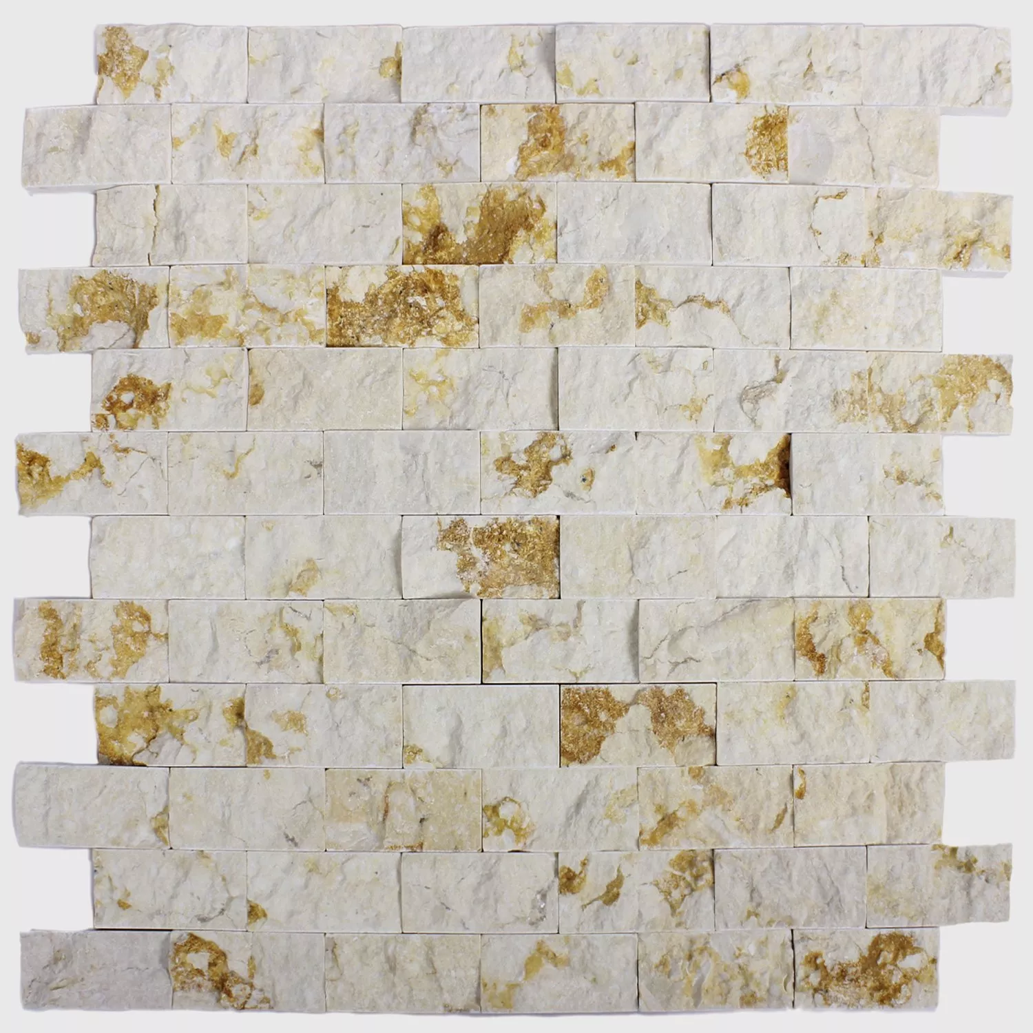 Natursten Mosaik Fliser Brick Splitface 3D Beige Skifer