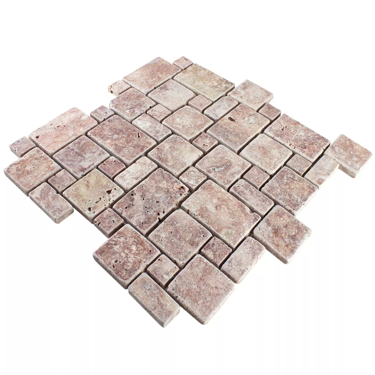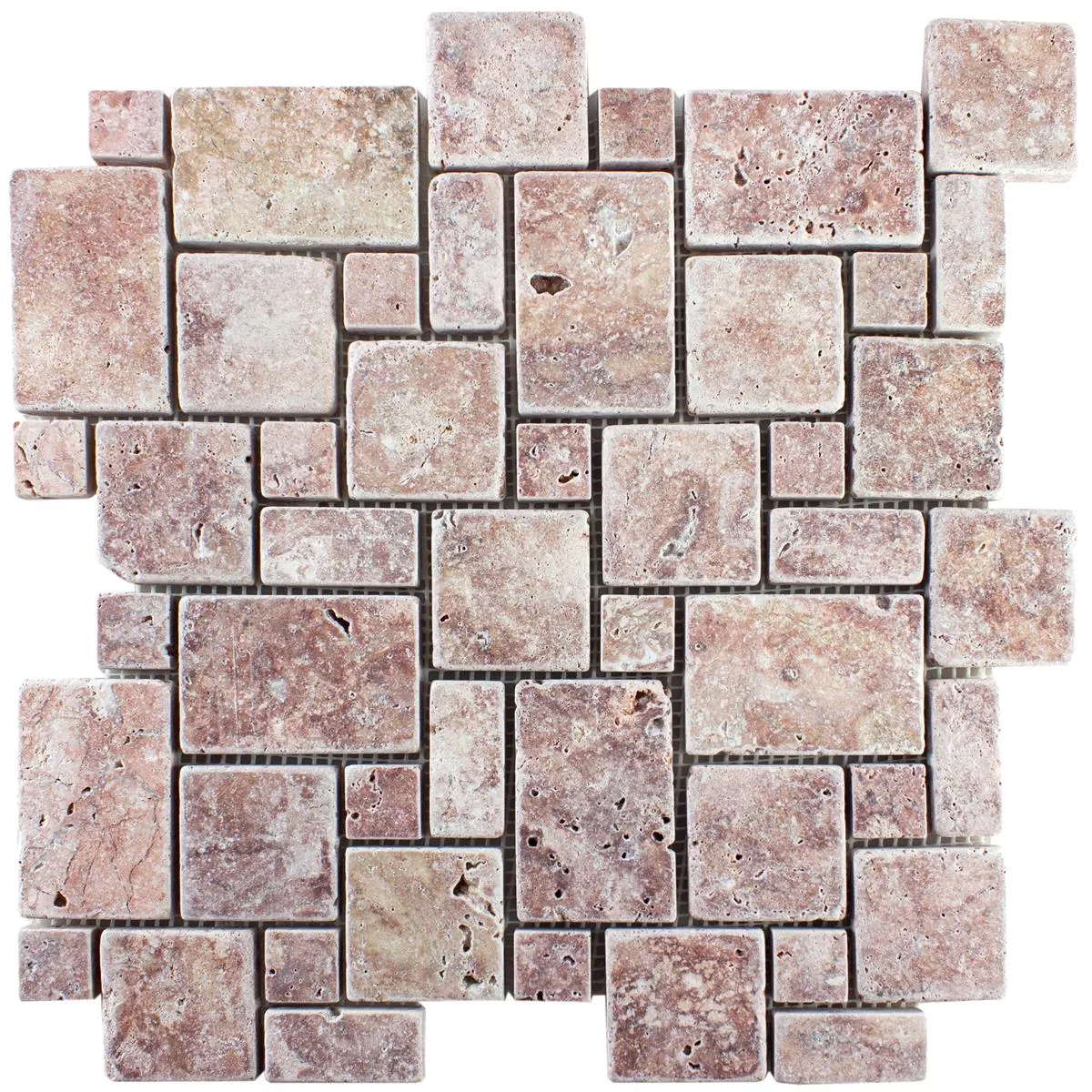 Natursten Travertin Mosaik Fliser LaGrange Rød