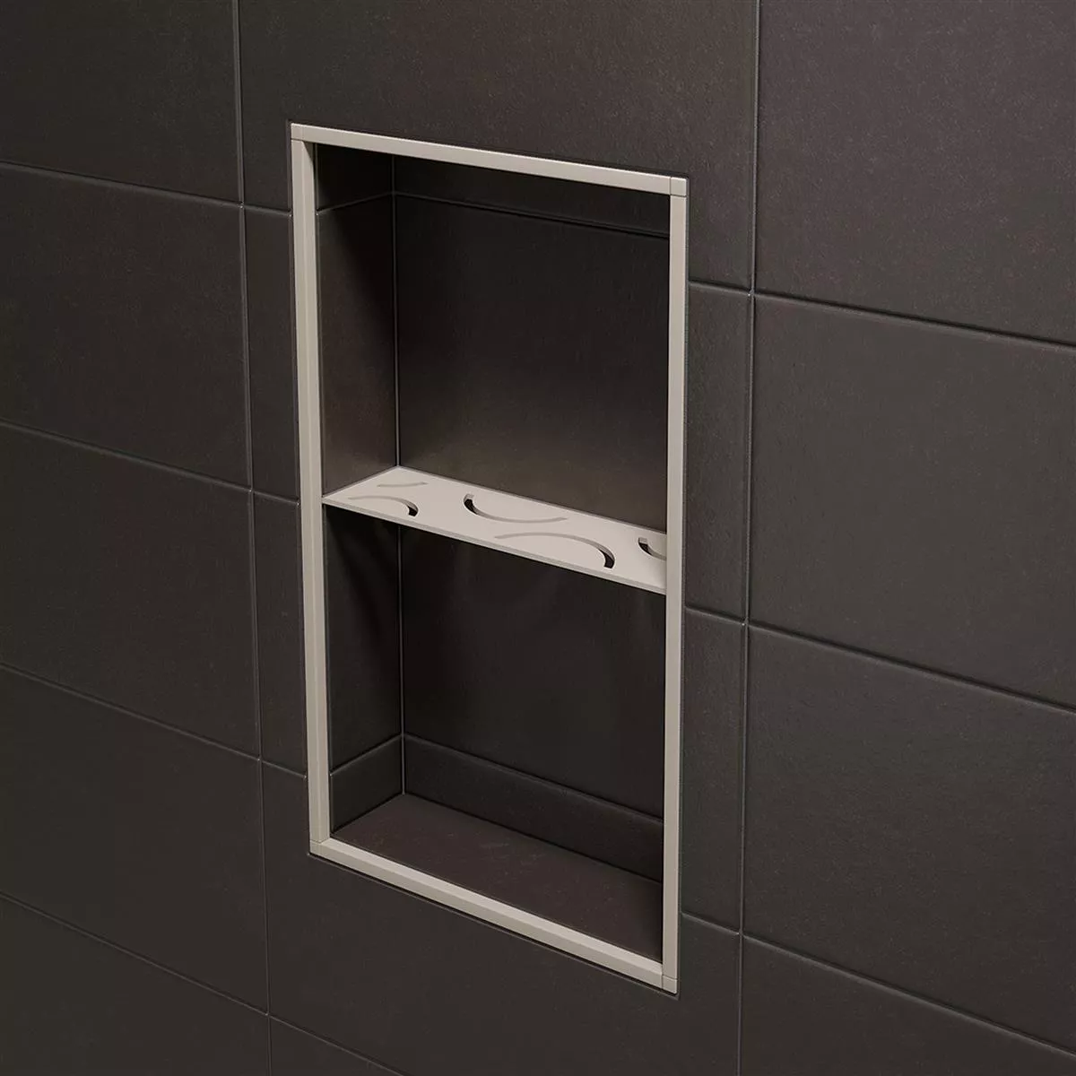 Schlüter-HYLDE-N-S1 Cremefarvet rektangulær niche-væghylde Med Schlüter-SHELF-N-S1 kan du udstyre den præfabrikerede Schlüter-KERDI-BOARD-niche med en præcist passende hylde, mens du lægger fliser. Det er ikke alt: Du har også maksimal fleksibilitet med hensyn til materiale og design. Den højkvalitets niche-væghylde er lavet af enten børstet rustfrit stål eller teksturbelagt aluminium.