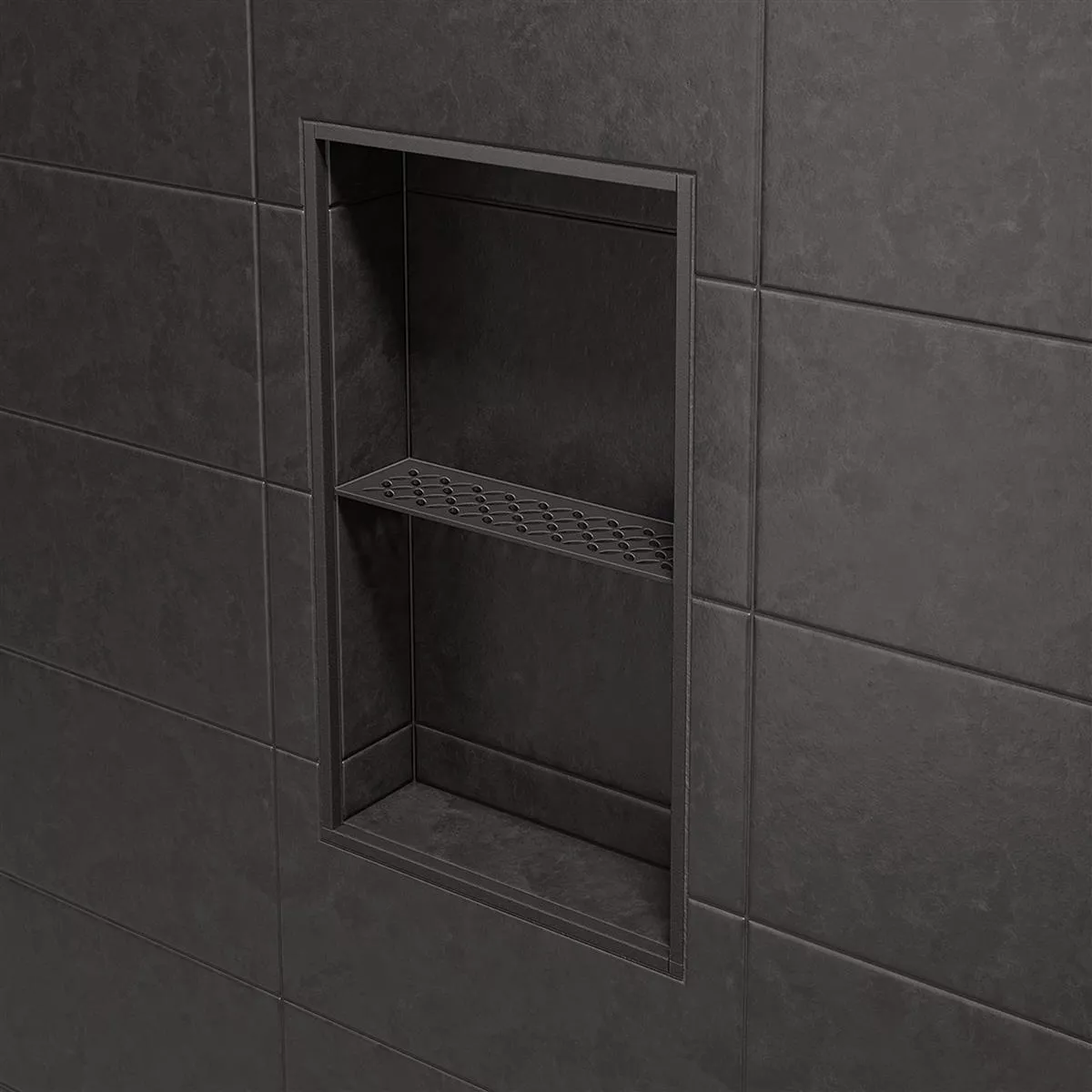 Schlüter-SHELF-N-S1 Anthrazit Rechteckige Nischen-Wandablage Mit Schlüter-SHELF-N-S1 können Sie während der Fliesenverlegung die vorgefertigte Nische Schlüter-KERDI-BOARD mit einer passgenauen Ablage ausstatten. Damit nicht genug: Sie haben hier auch noch maximale Flexibilität in Sachen Material und Design. So ist die hochwertige Nischen-Wandablage entweder aus gebürstetem Edelstahl oder strukturbeschichtetem Aluminium gefertigt.