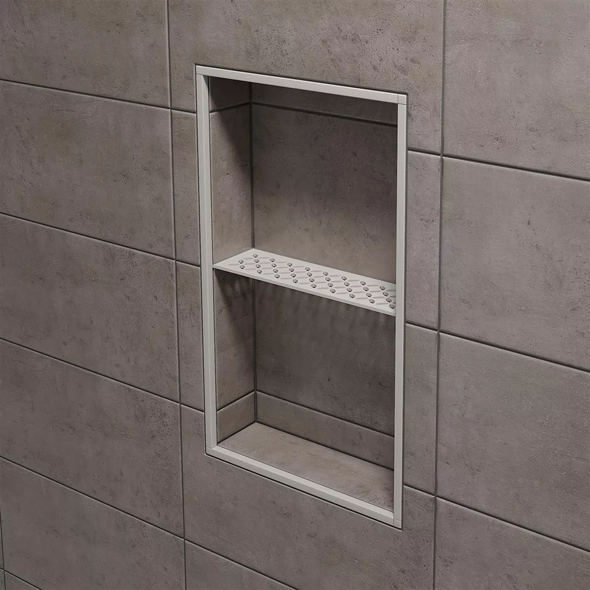 Schlüter-SHELF-N-S1 Beige Rechteckige Nischen-Wandablage Mit Schlüter-SHELF-N-S1 können Sie während der Fliesenverlegung die vorgefertigte Nische Schlüter-KERDI-BOARD mit einer passgenauen Ablage ausstatten. Damit nicht genug: Sie haben hier auch noch maximale Flexibilität in Sachen Material und Design. So ist die hochwertige Nischen-Wandablage entweder aus gebürstetem Edelstahl oder strukturbeschichtetem Aluminium gefertigt.