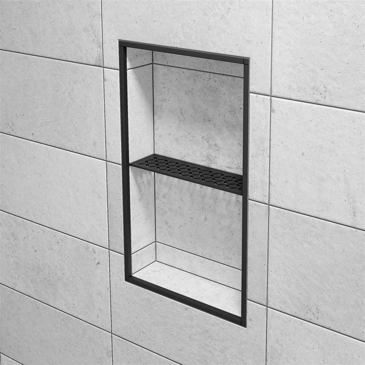 Schlüter-SHELF-N-S1 Graphitschwarz Rechteckige Nischen-Wandablage Mit Schlüter-SHELF-N-S1 können Sie während der Fliesenverlegung die vorgefertigte Nische Schlüter-KERDI-BOARD mit einer passgenauen Ablage ausstatten. Damit nicht genug: Sie haben hier auch noch maximale Flexibilität in Sachen Material und Design. So ist die hochwertige Nischen-Wandablage entweder aus gebürstetem Edelstahl oder strukturbeschichtetem Aluminium gefertigt.