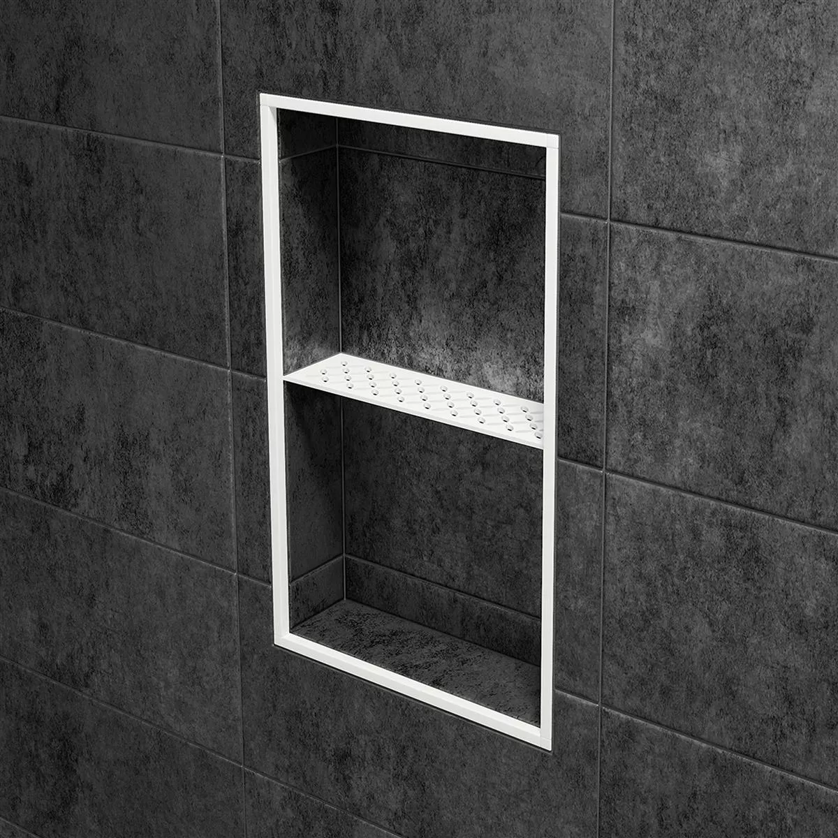 Schlüter-SHELF-N-S1 Weiß Rechteckige Nischen-Wandablage Mit Schlüter-SHELF-N-S1 können Sie während der Fliesenverlegung die vorgefertigte Nische Schlüter-KERDI-BOARD mit einer passgenauen Ablage ausstatten. Damit nicht genug: Sie haben hier auch noch maximale Flexibilität in Sachen Material und Design. So ist die hochwertige Nischen-Wandablage entweder aus gebürstetem Edelstahl oder strukturbeschichtetem Aluminium gefertigt.