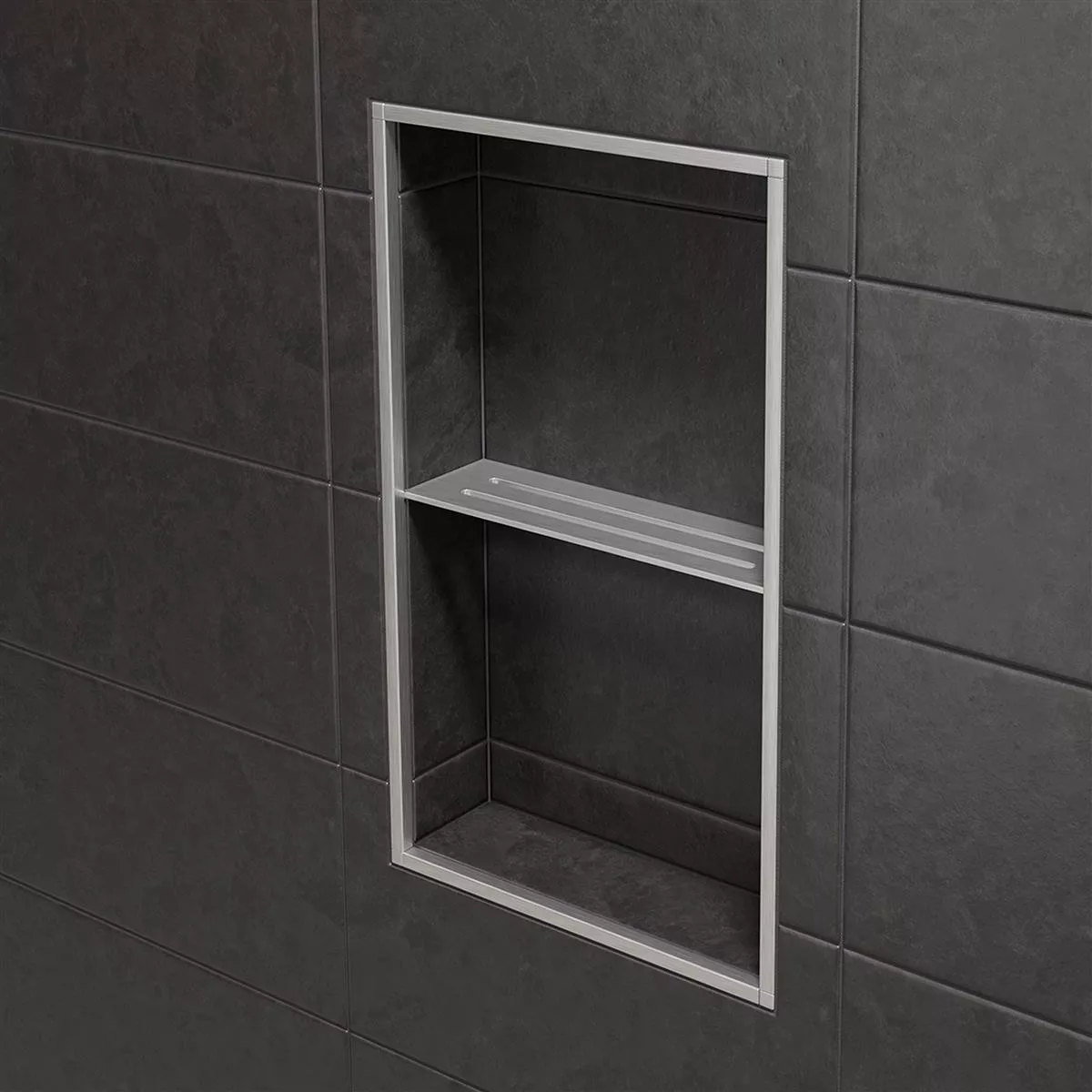 Schlüter-SHELF-N-S1 Grau Rechteckige Nischen-Wandablage Mit Schlüter-SHELF-N-S1 können Sie während der Fliesenverlegung die vorgefertigte Nische Schlüter-KERDI-BOARD mit einer passgenauen Ablage ausstatten. Damit nicht genug: Sie haben hier auch noch maximale Flexibilität in Sachen Material und Design. So ist die hochwertige Nischen-Wandablage entweder aus gebürstetem Edelstahl oder strukturbeschichtetem Aluminium gefertigt.