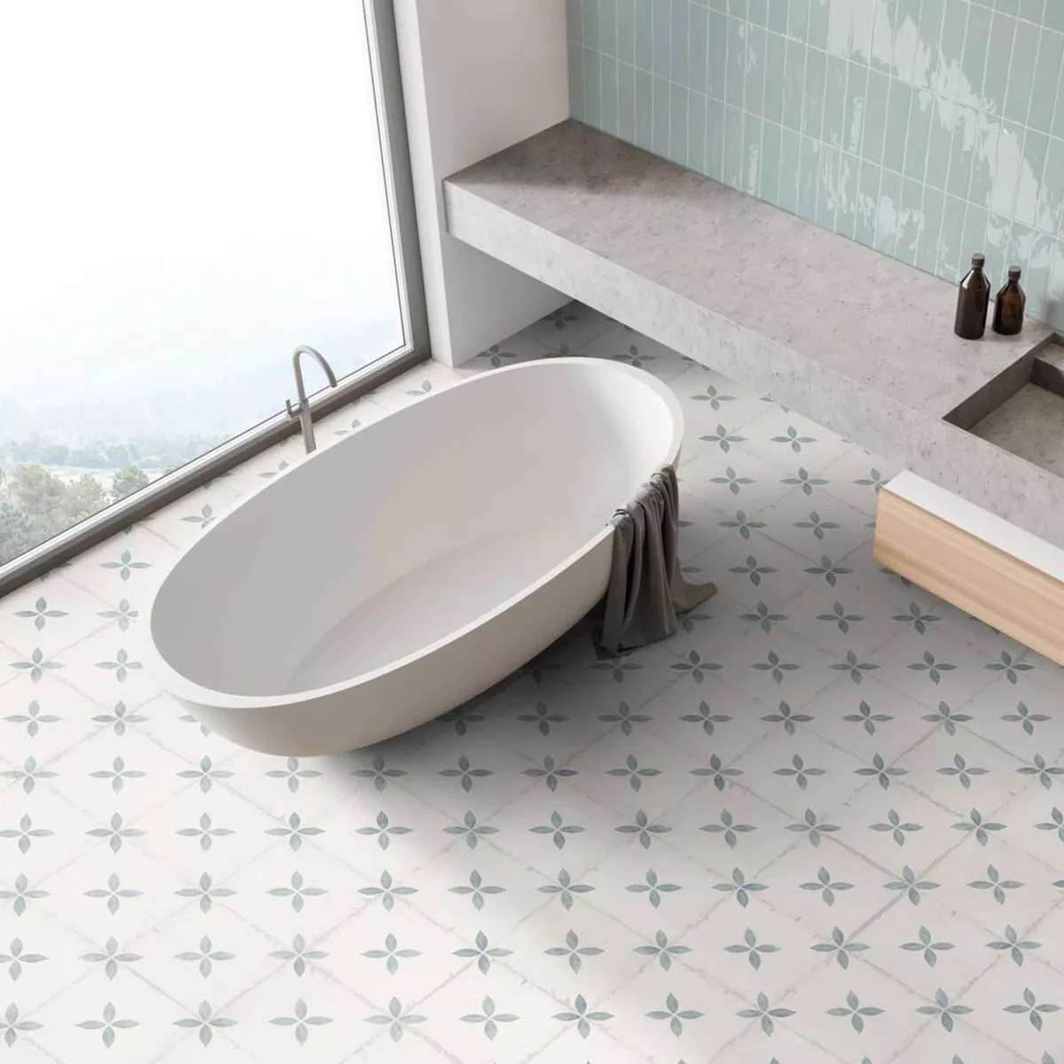 Denne gulvflise i porcelænsstentøj af høj kvalitet fra den berømte Pelin-flisekollektion er kendetegnet ved sin alsidighed og giver dig mulighed for at forbedre mange rum i dit hus på samme tid. Uanset om det er i køkkenet, badeværelset, udestuen, gangen eller stuen – den lyseblå og cremefarvede gulvflise ser fantastisk ud i ethvert rum.