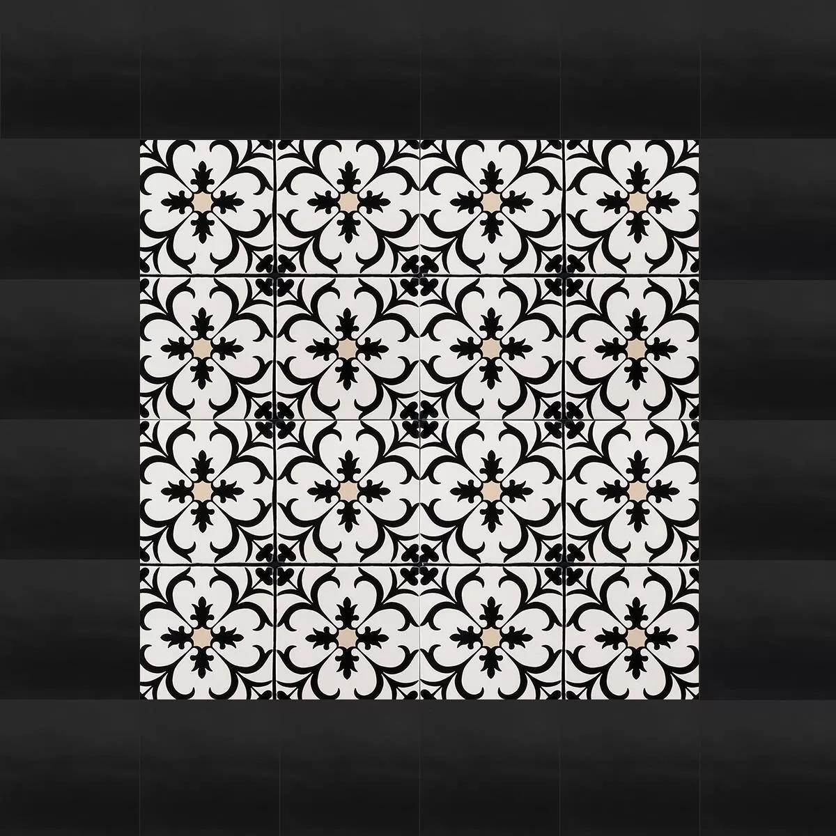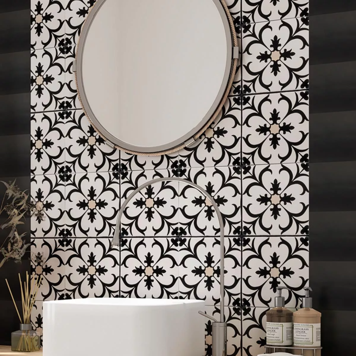 Fordyb dig i tidløs elegance med vores Ornamenti porcelæns stentøjsfliser i sort. Med deres glaserede overflade og matte finish tilføjer de et strejf af sofistikering og stil til ethvert rum. Takket være deres gulvvarmeevne tilbyder de ikke kun komfort, men også funktionalitet i ethvert indendørs område, hvad enten det er badeværelset, køkkenet, stuen eller endda bruseren.