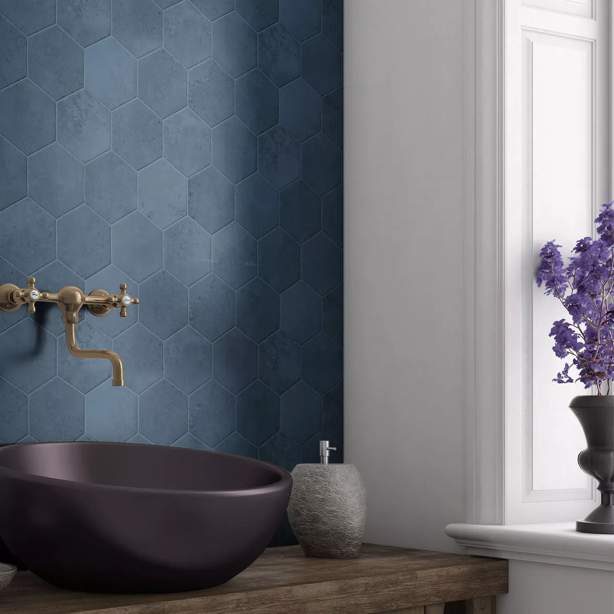 Disse udsøgte mørkeblå stentøjsfliser af porcelæn giver din swimmingpool, pool eller andre våde områder et elegant og moderne look. Den sekskantede form, der måler 22,5 x 25,9 cm, sikrer et unikt design.