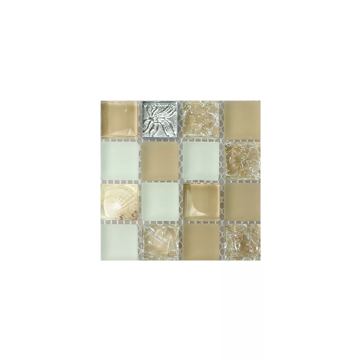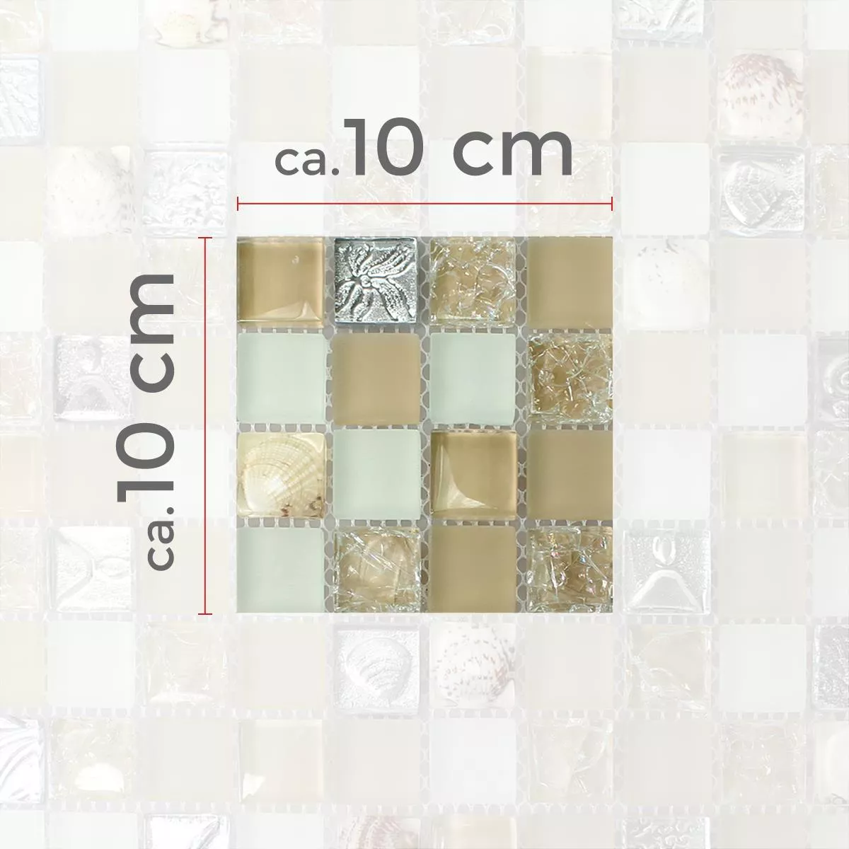 Prøve fra Glas Skal Mosaik Fliser Byron Beige Mix