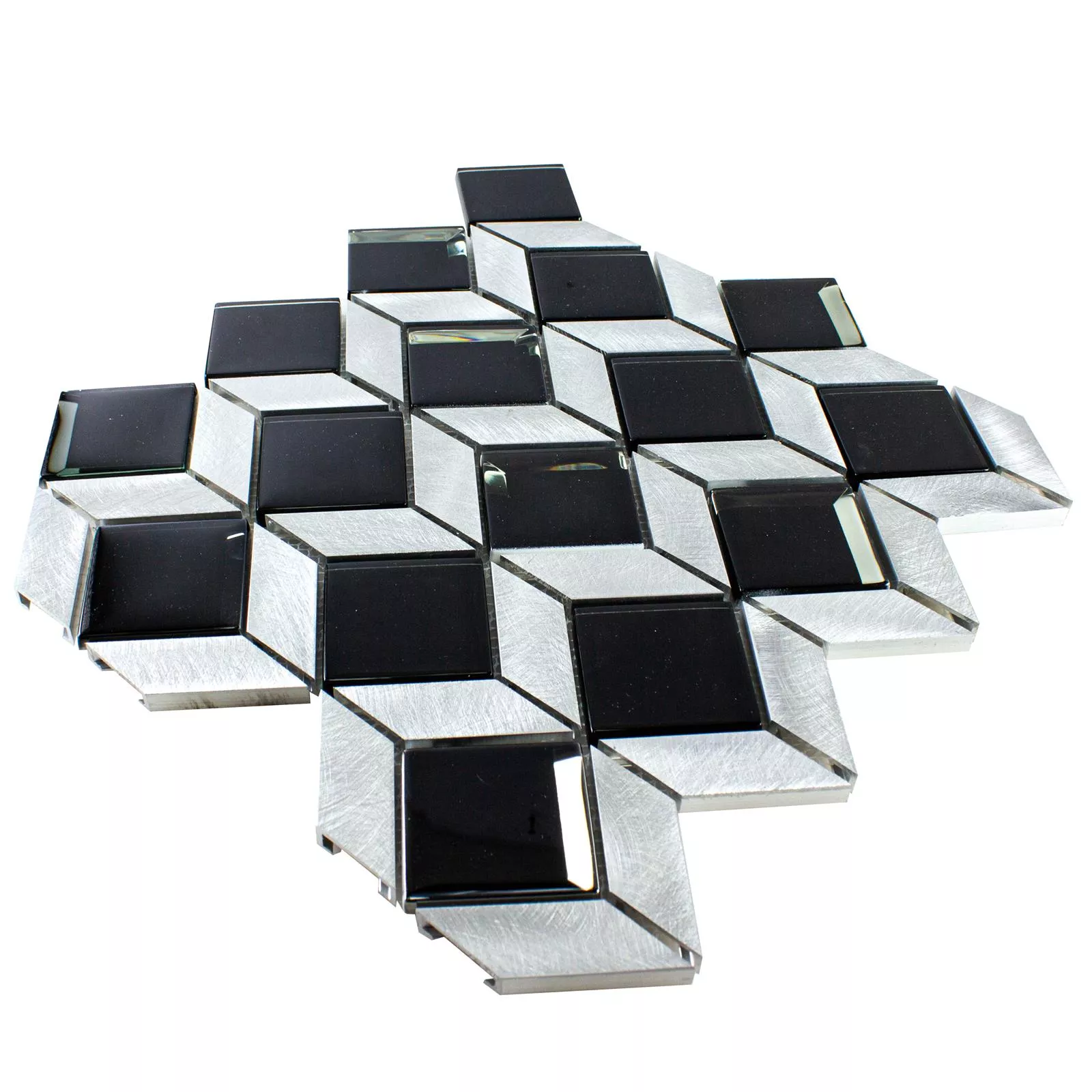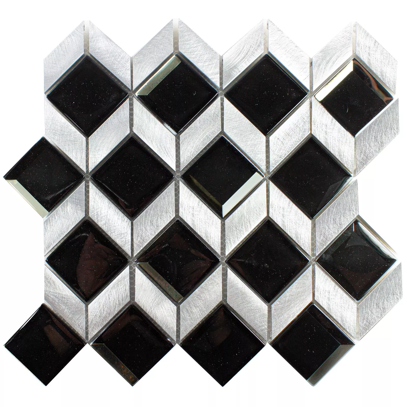 Prøve Glas Metal Mosaik Fliser Tanja Sort Sølv Terninger