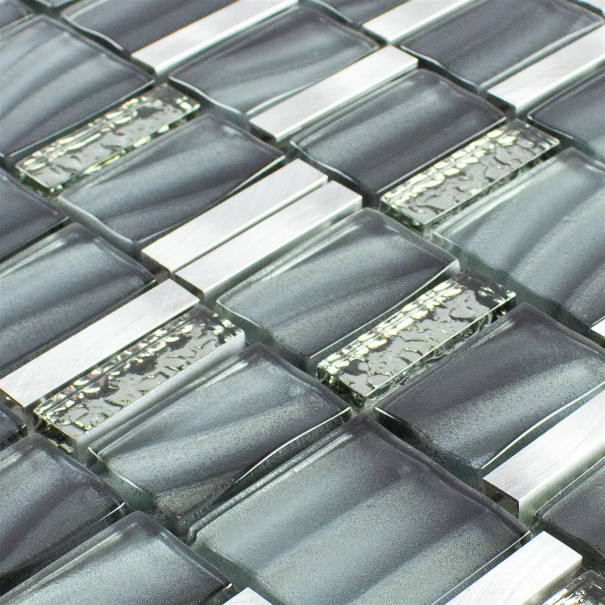 Prøve Glas Metal Mosaik Fliser Union Gra Sølv