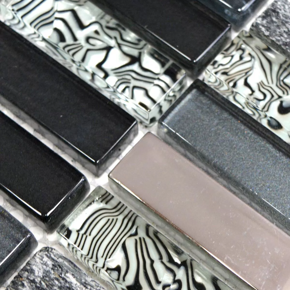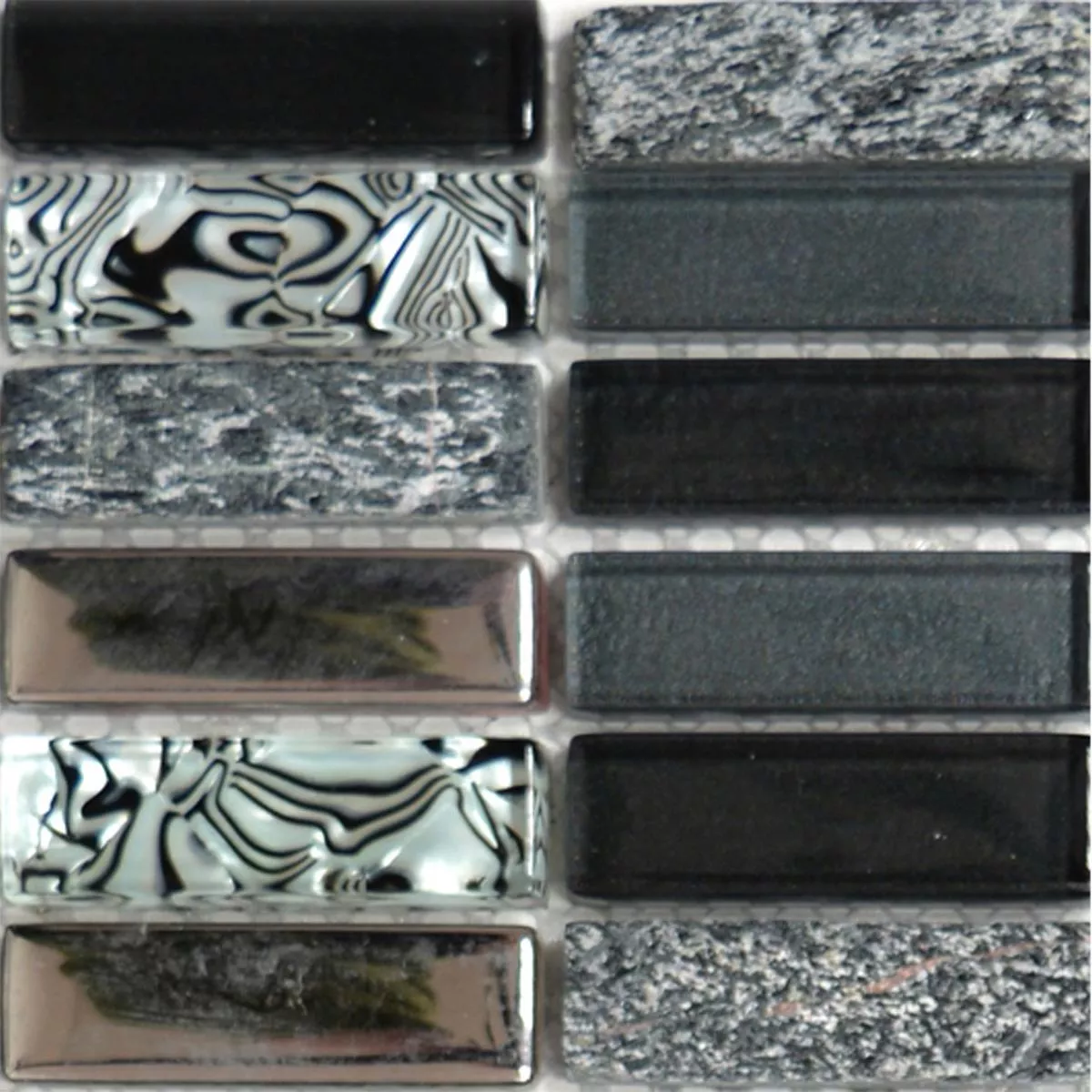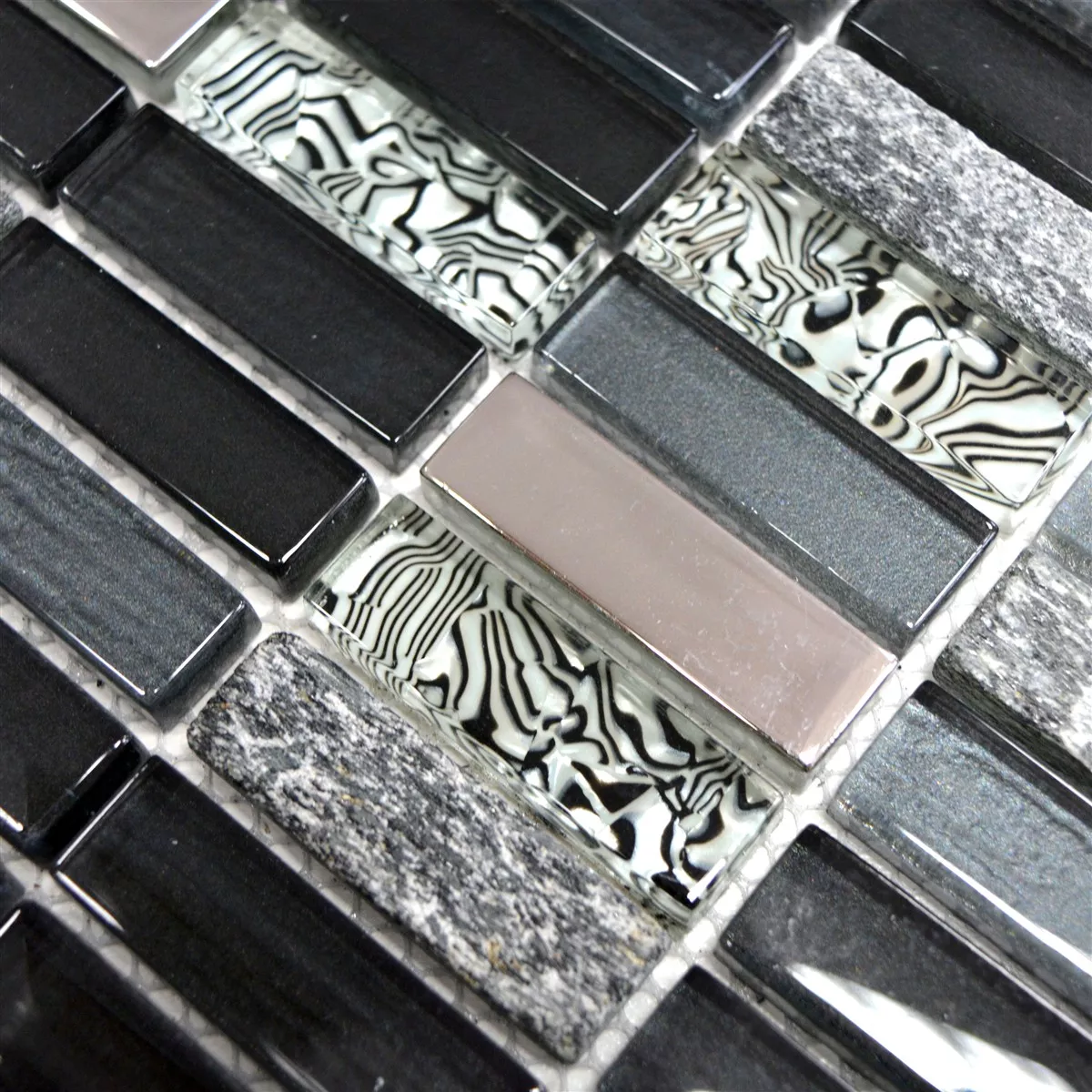 Prøve Glas Natursten Mosaik Fliser Magia Sort Stænger